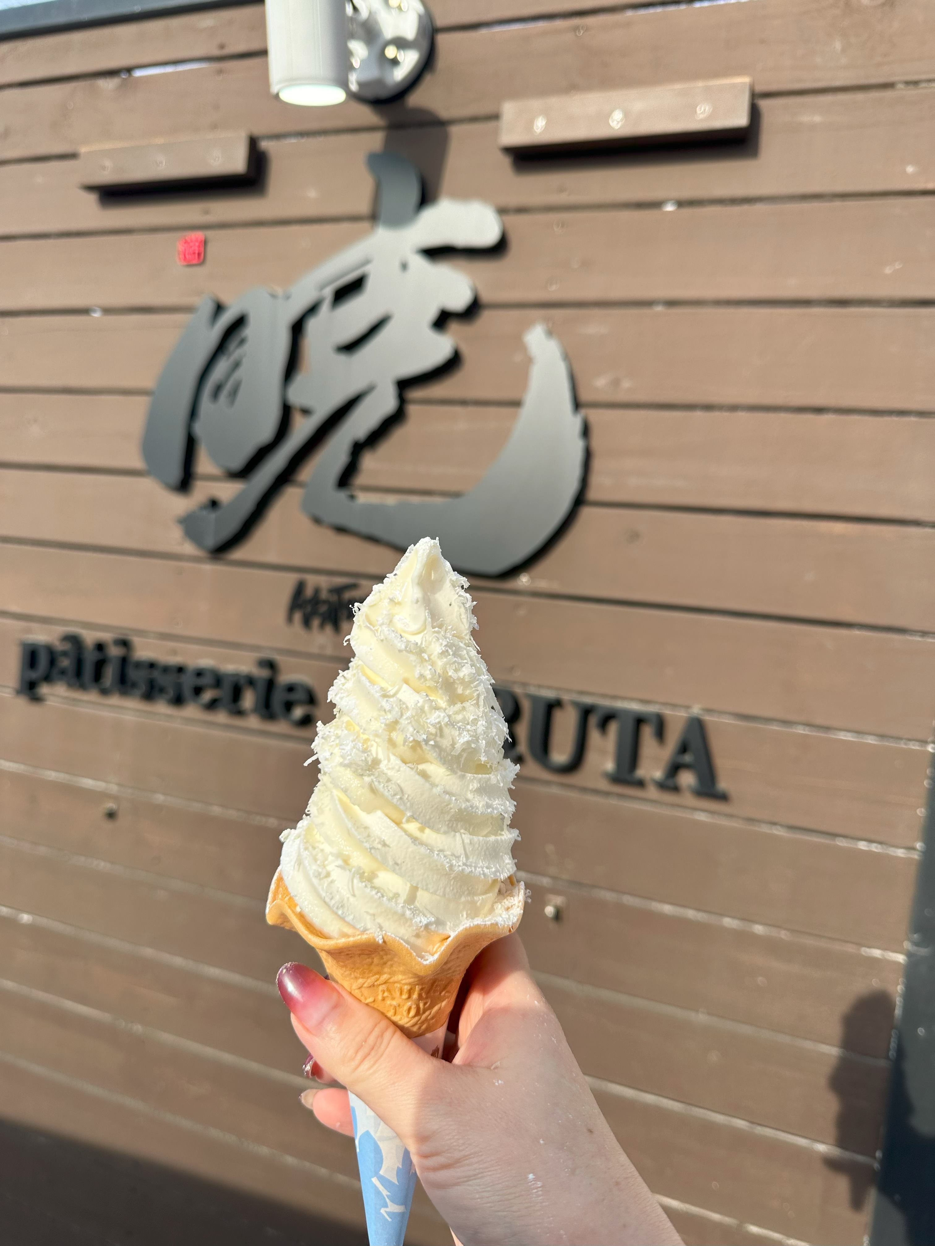 土地を見に行ったついでにソフトクリームが食べたくて長沼町の「暁 パティスリーフルタ」にいってきました~。