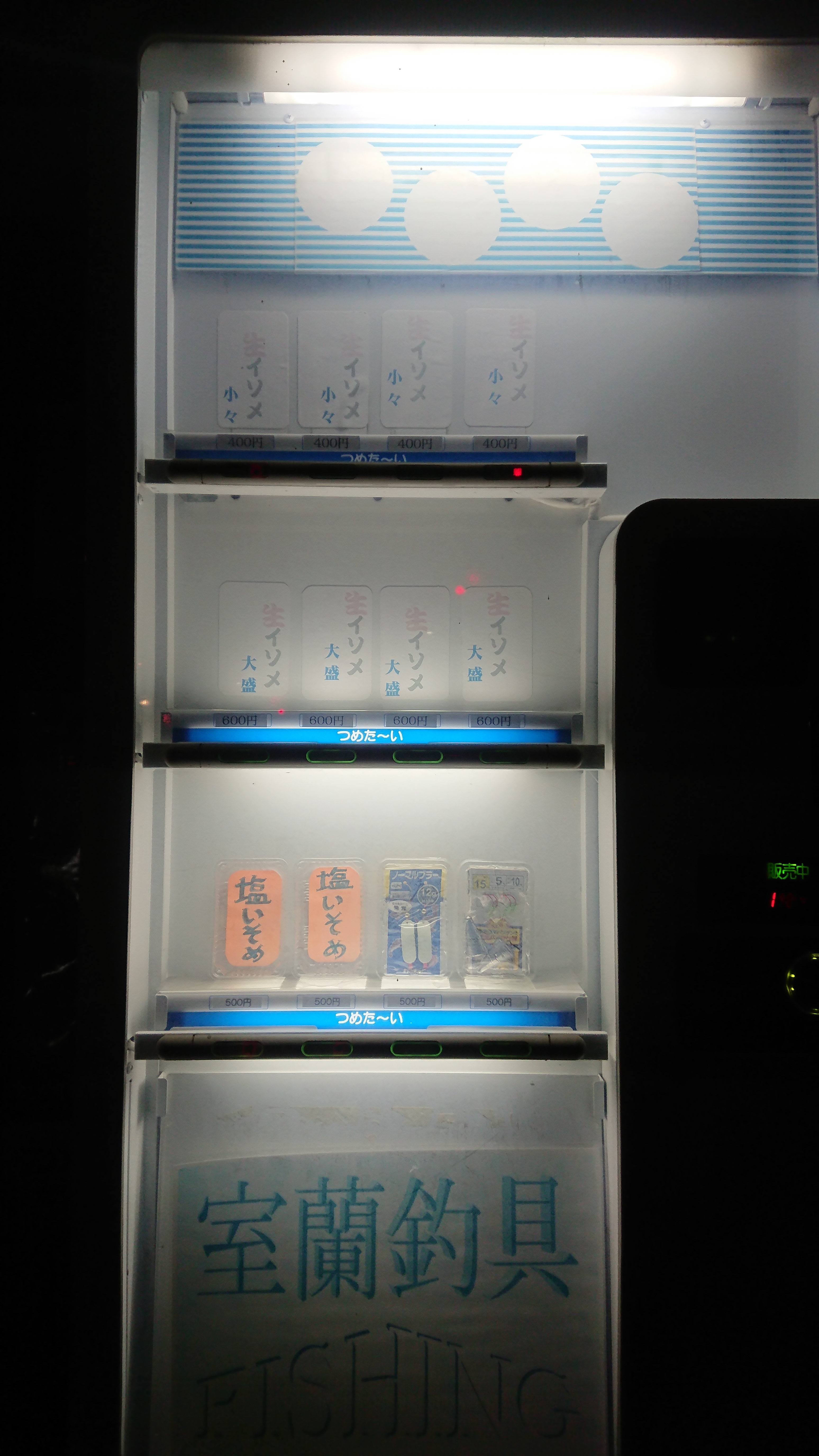 と 思ったら なんと 釣具店の前に 怪しげな自動販売機が!!