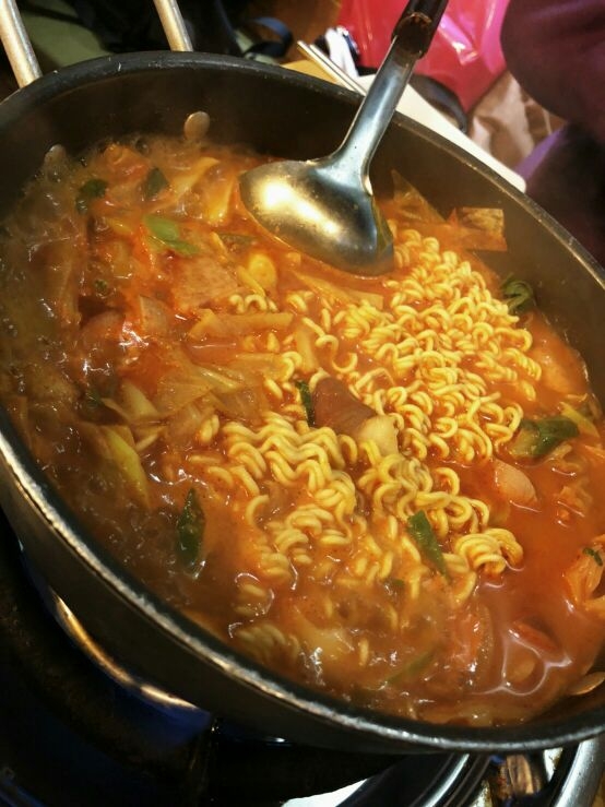 プデチゲ(じゃがいもとスパムとキャベツとソーセージ入りにラーメン追加)