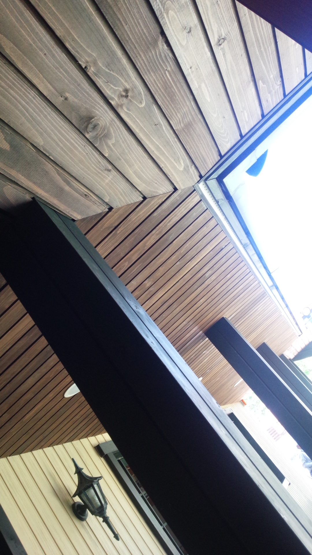 軒天と言う場所に 現在 木を取り付け中です。