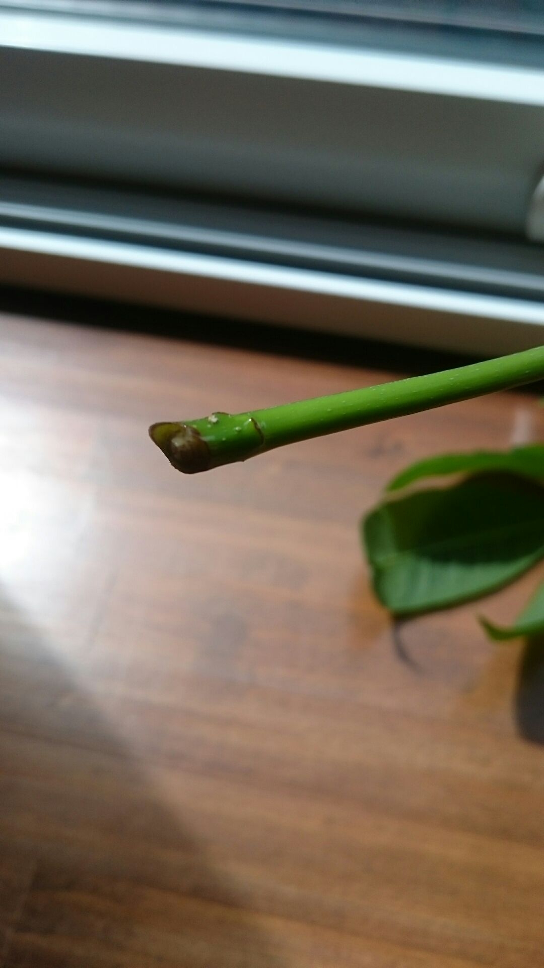 モデルハウスの子パキラちゃん、やっと根が出てきました!