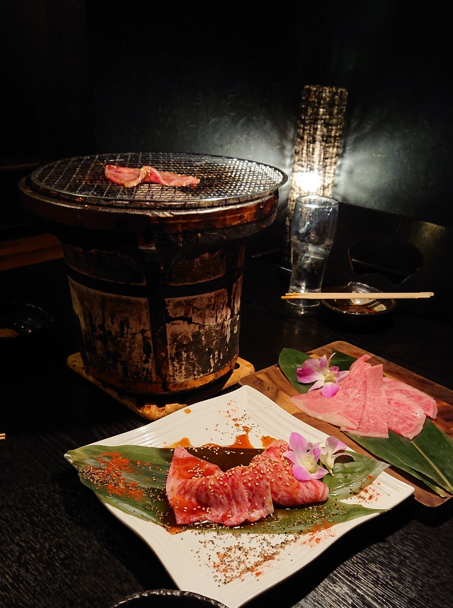 手前のが焼きすきで生卵つけて、奥のは焼きしゃぶ、おろしポン酢で頂きました。