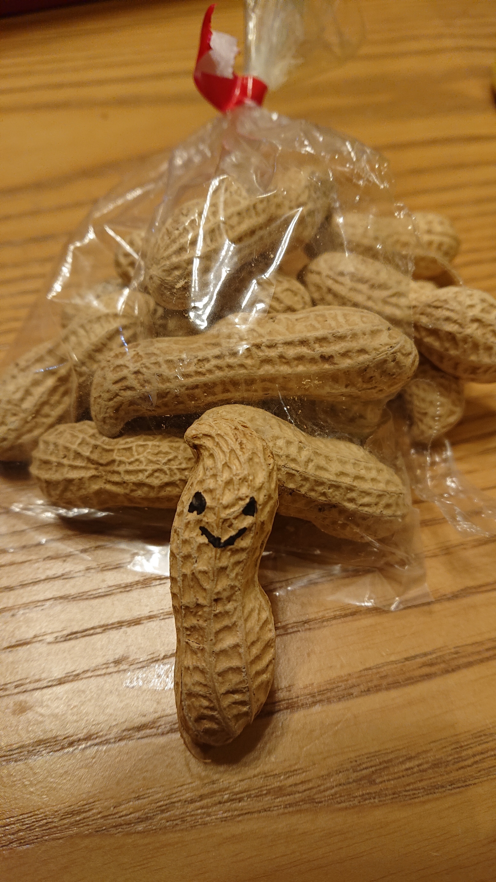 玄関ノブにた~くさんの落花生が入った袋がかかっていました。