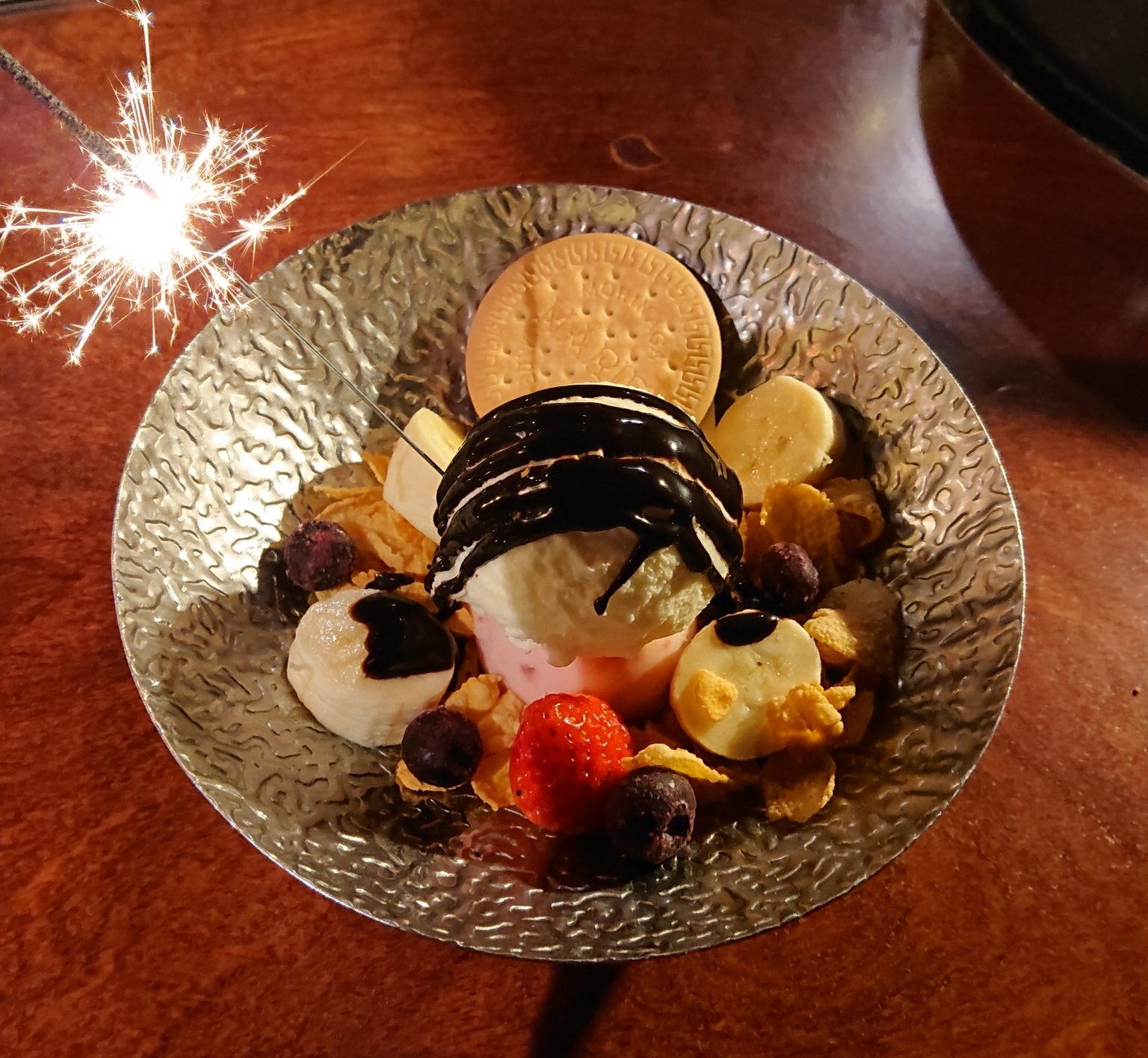 昨日お祝いしてもらって、お店から花火付きのアイス頂きました❤