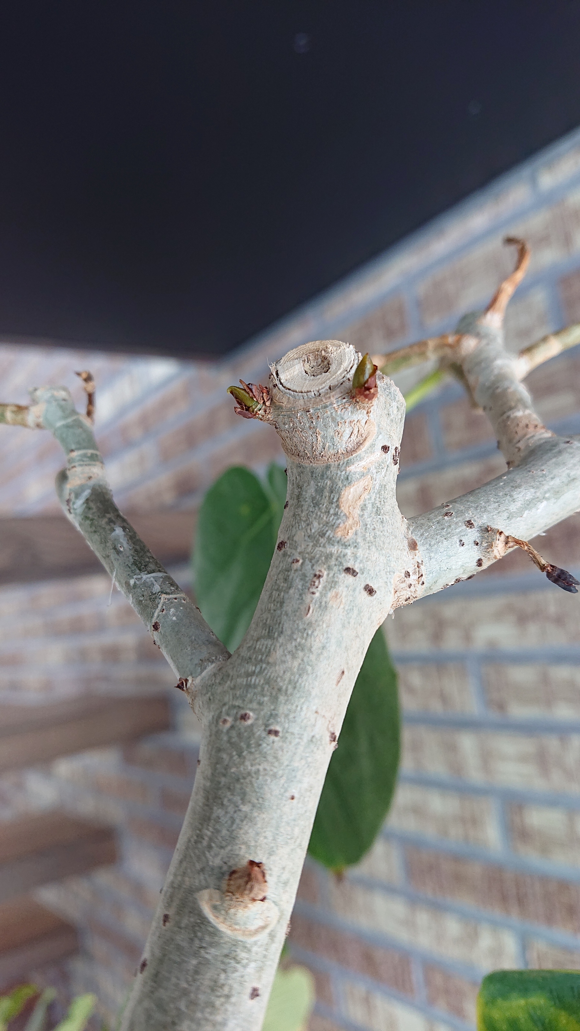 ペッパー君の隣にいつもいるんですが、昨年てっぺんの葉が落ちてしまい、がっくししてたんですが、なんと芽が出てきました。
