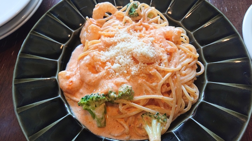 エビとブロッコリーのトマトクリーム、もう一人はたらこクリームにしました。