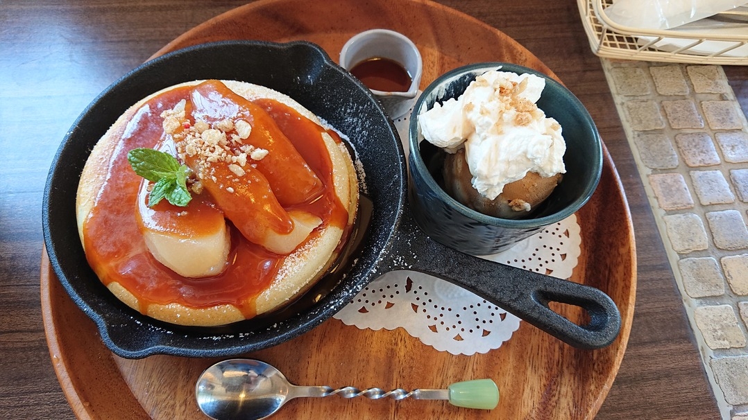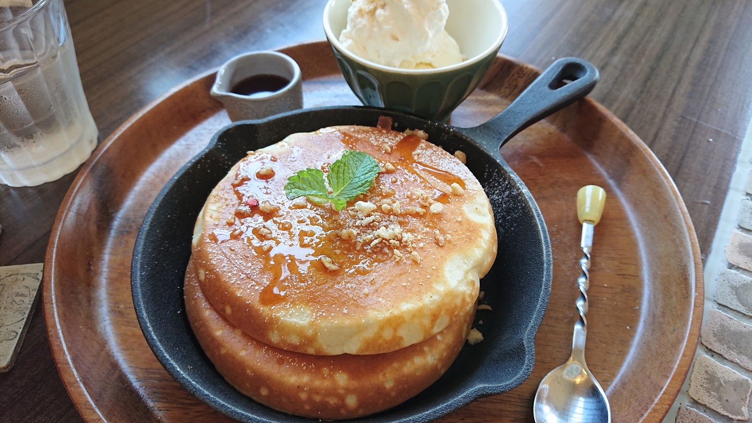 パフェと迷いましたがもちもちらしいのでパンケーキ!