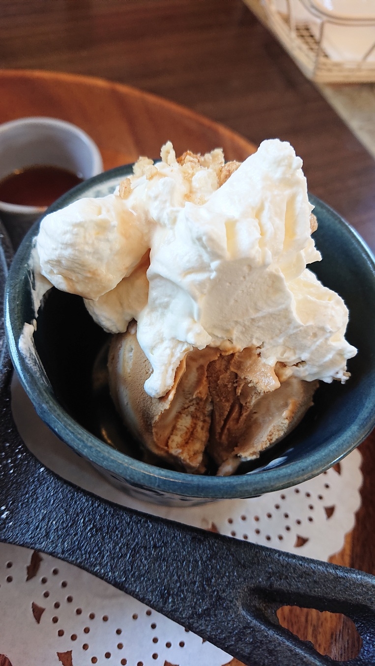 メープルシロップの他、アイスクリームとホイップのトッピングもあって楽しいです!