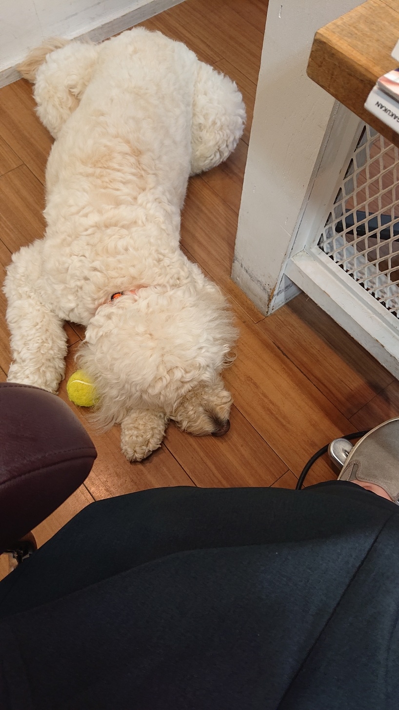 先日行った美容室にわんちゃんがいるんですが、自由行動の日だったようで、店内に入った途端お出迎えしてくれました。