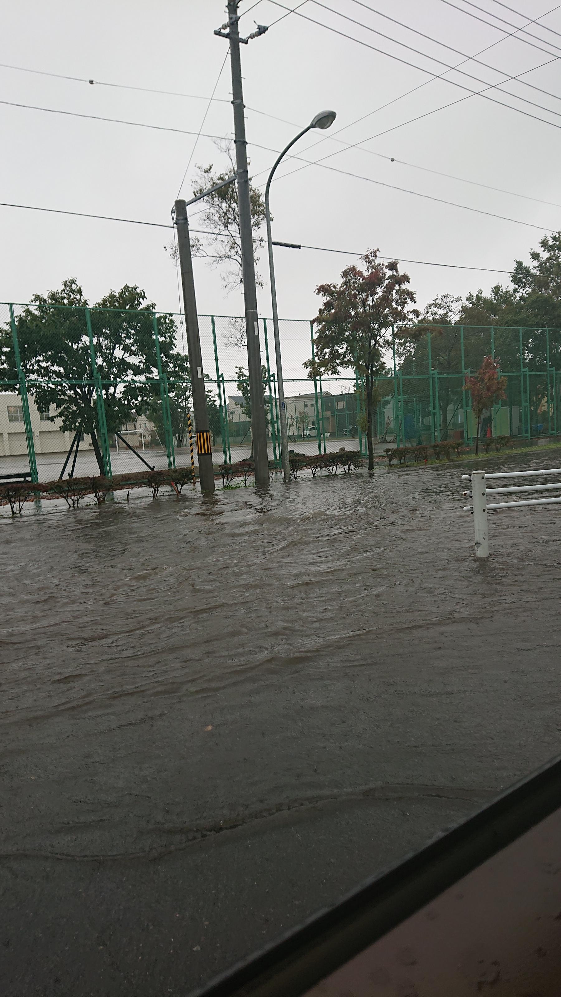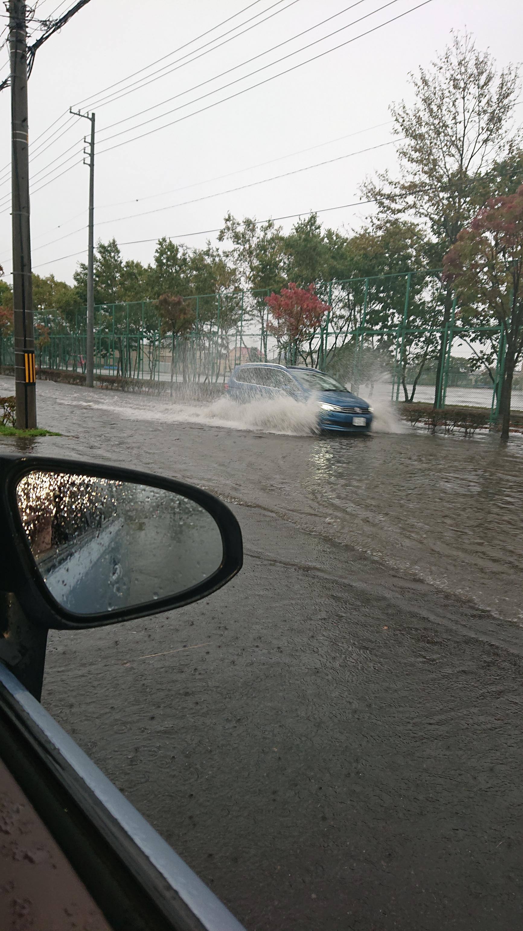 朝、苫小牧の久しぶりの道路冠水を見ました~。
