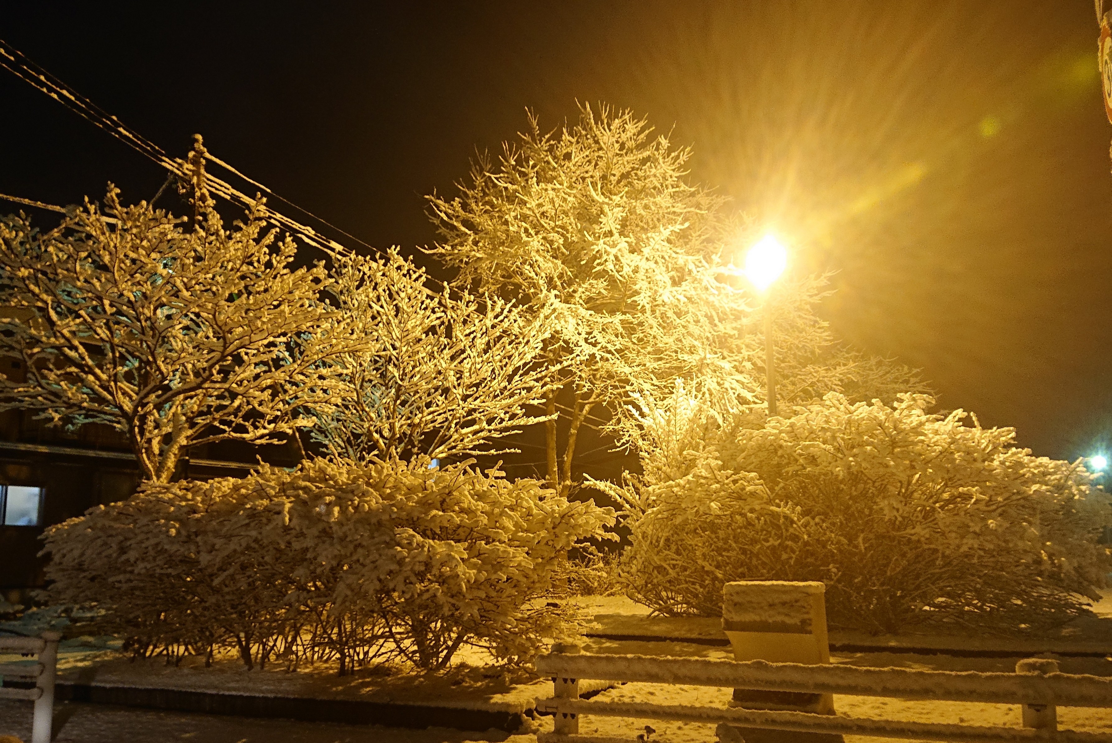 木に重たい雪が綺麗に積もって、雪の桜みた~い。
