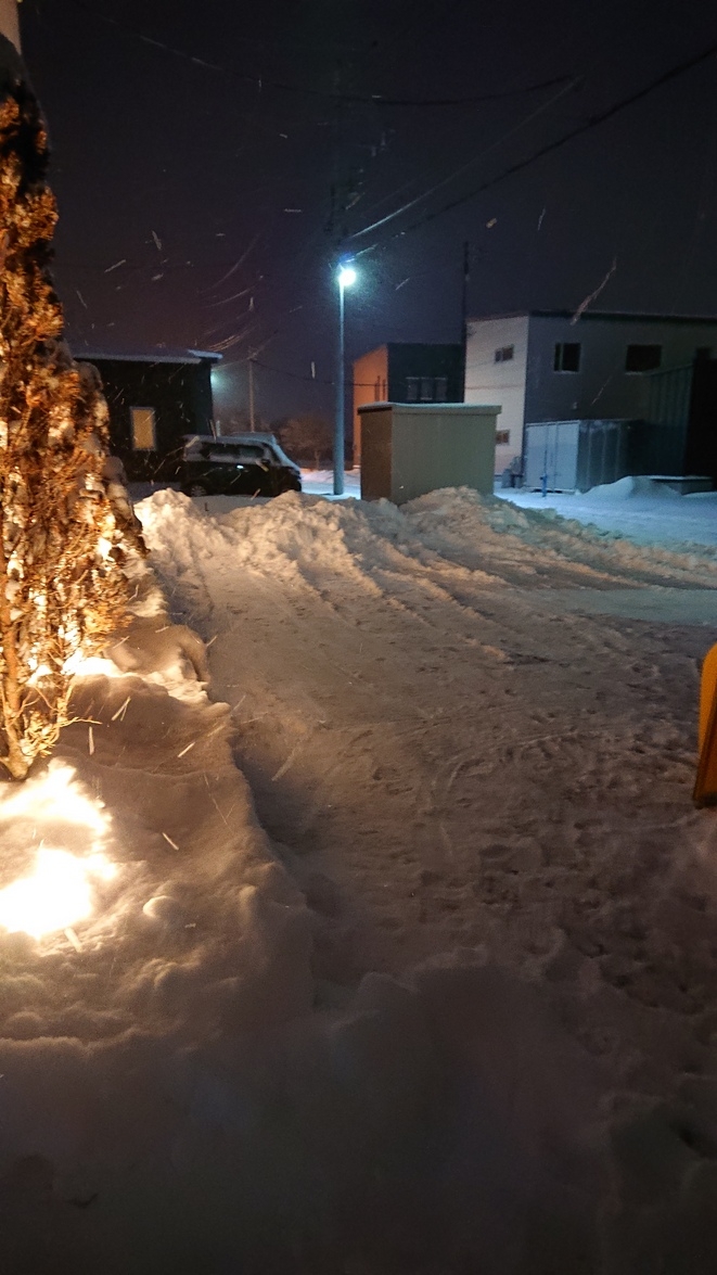 独りぼっちの除雪は慣れっこですが、暗い中の除雪は寂しく寒いです~。玄関から転げ落ちた際には怒りの様なものが…。