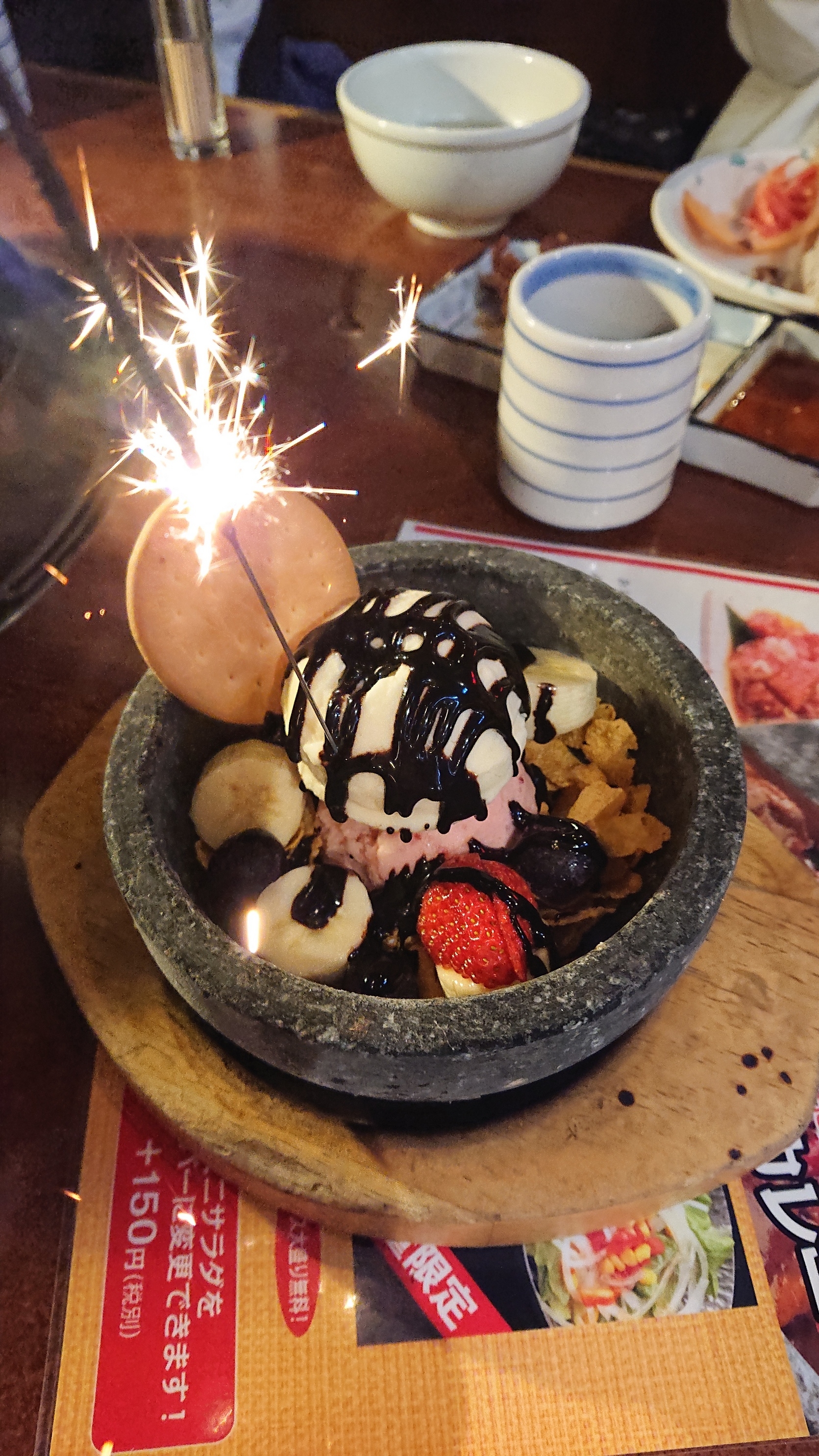 焼肉屋さんの金剛園で会員証を作ると(年会費無料)バースデーハガキが届くので、持っていくと指定の肉とこのアイスが頂けます~。