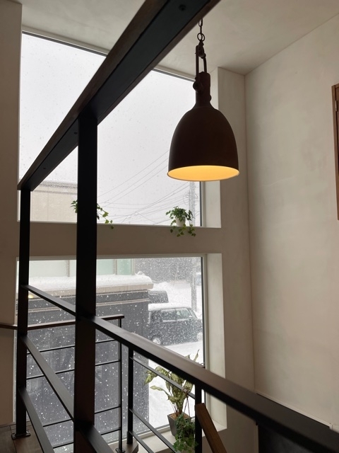 大きな窓から見る景色も好きで、階段に座りながら、流れる雲や次から次へと落ちてくる雪を眺めます。