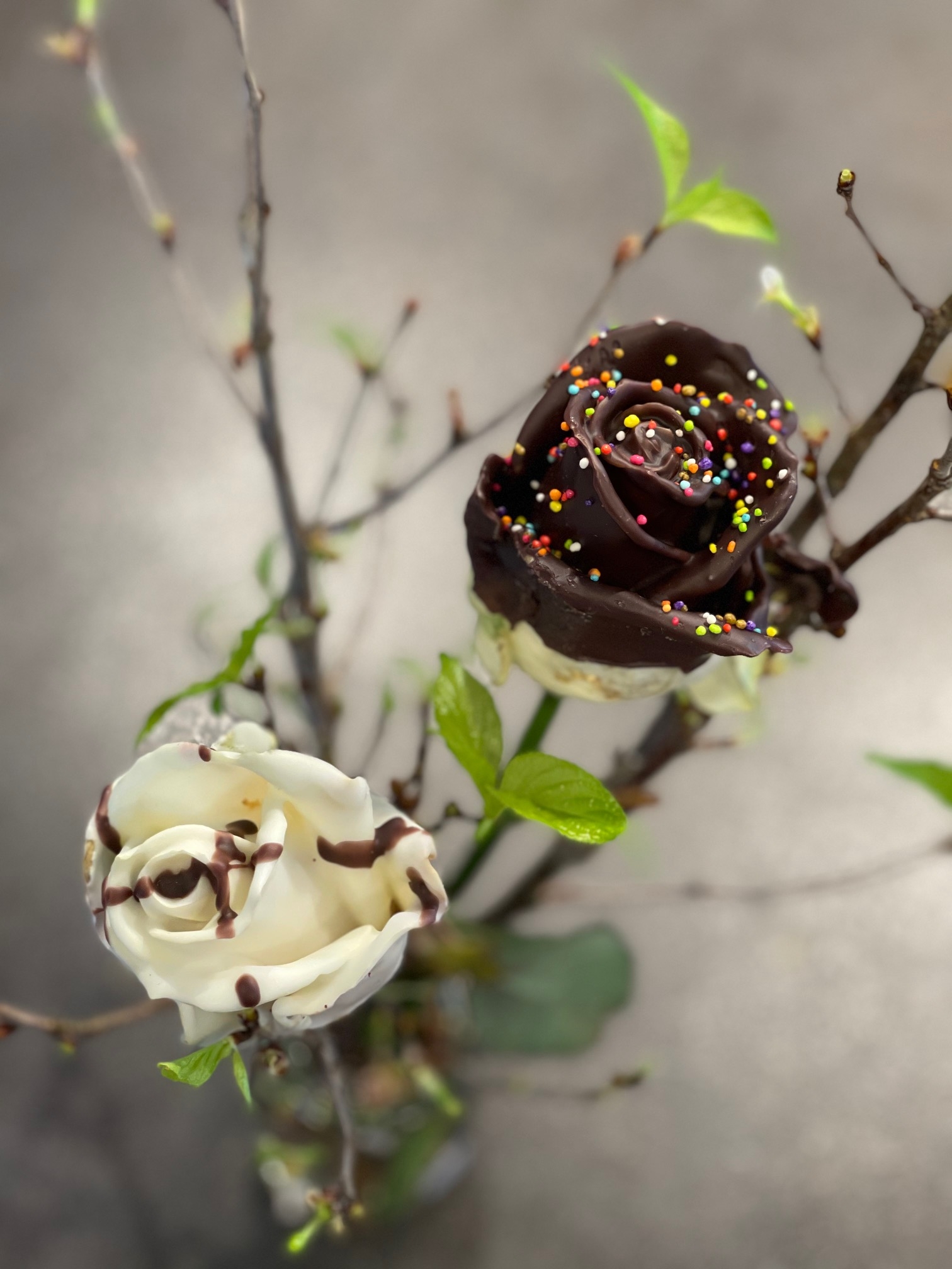 薔薇にチョコレートをコーティングされていて美味しそう!
