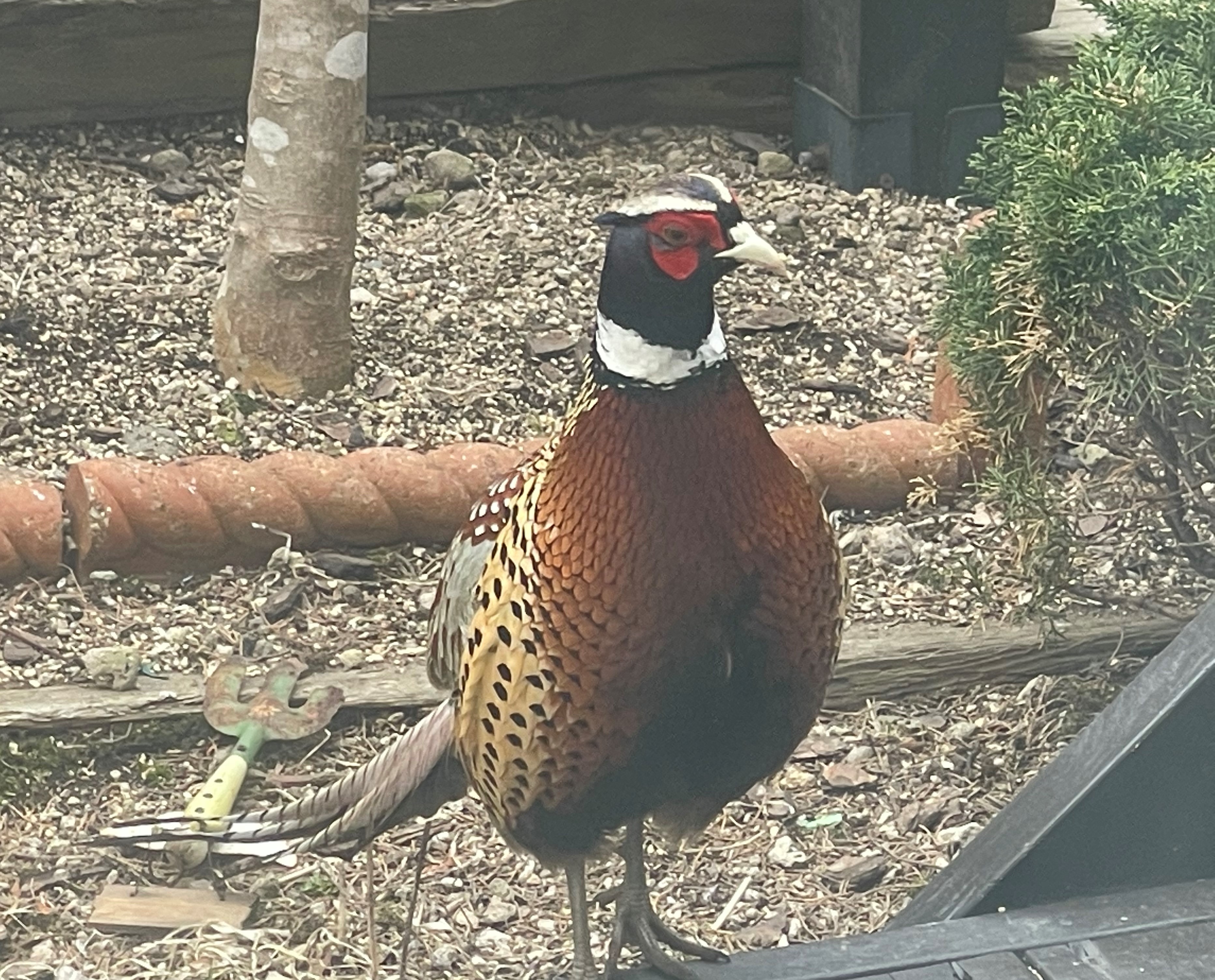 このキジ、体は見事な彩りなのに、鳴き声が美しくないです。神様は完璧は作らないのですね。