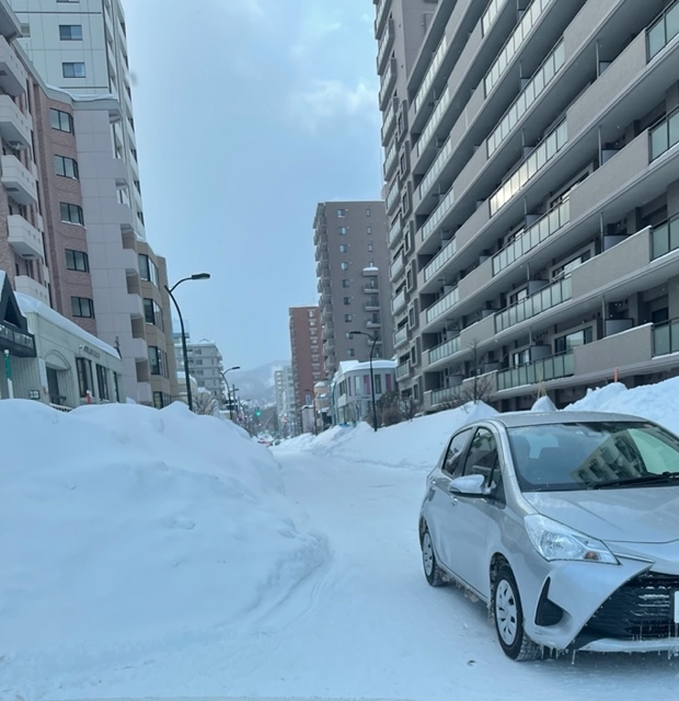 今もまだ中道に入ると雪の擁壁があって、直角に削られているからまるで巨大迷路のようです。
