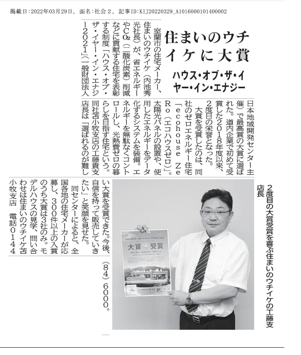 2021年は、当社 ’エコハウス・ゼロ’にての大賞受賞!!