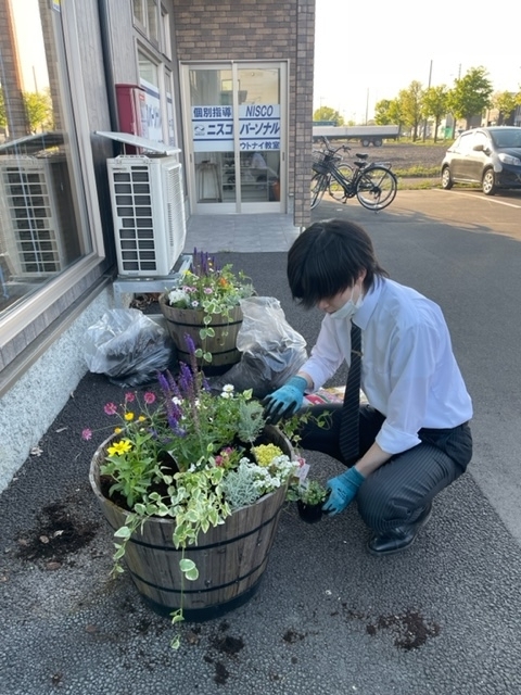 昨年は池田君と植えましたが、今年は羽野君もいて大助かり!