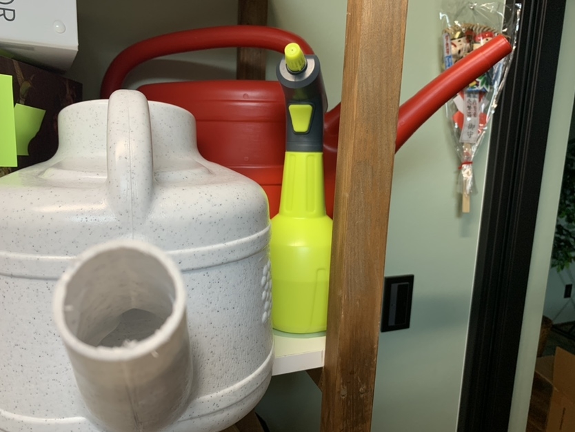 写真は、毎朝日課のジョウロと自動霧吹き。