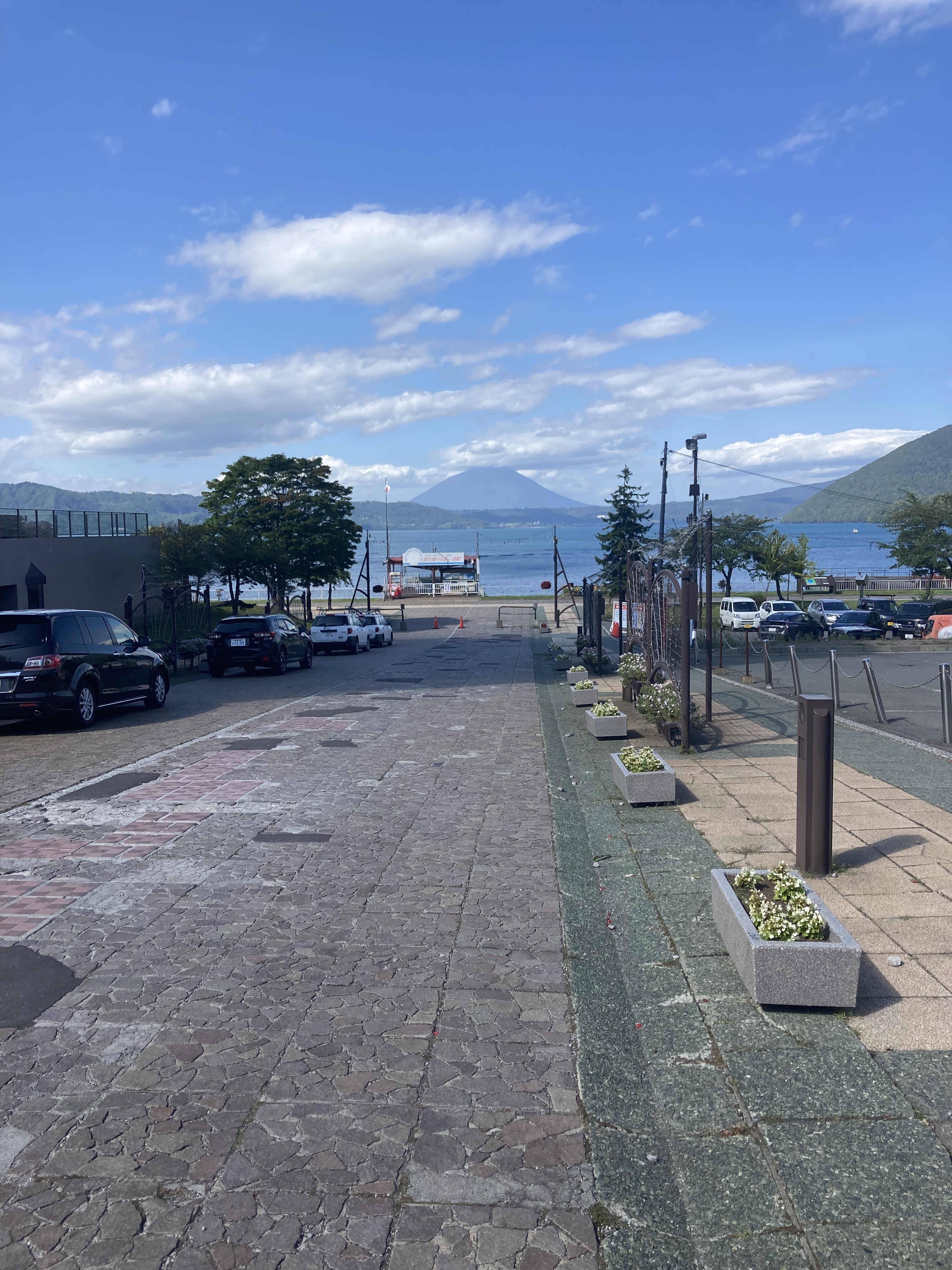 すぐそばの洞爺湖のベンチで