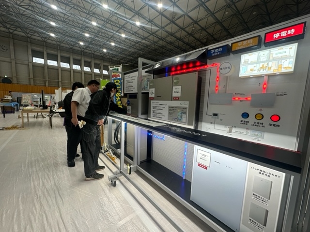 「省エネ住宅に住もう‼」ブースでの出店で、V2ℍ蓄電システムや太陽光を使っての電気の流れを展示させて頂きました。