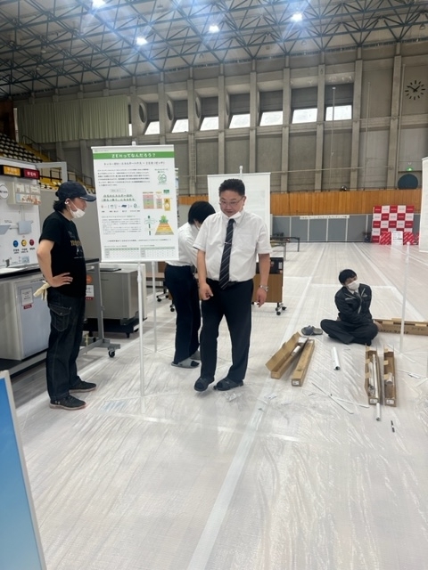 掲示物が大変大きいので、成田さんと苫小牧支店、皆で作業しました。コロナあけの久しぶりのイベントです。