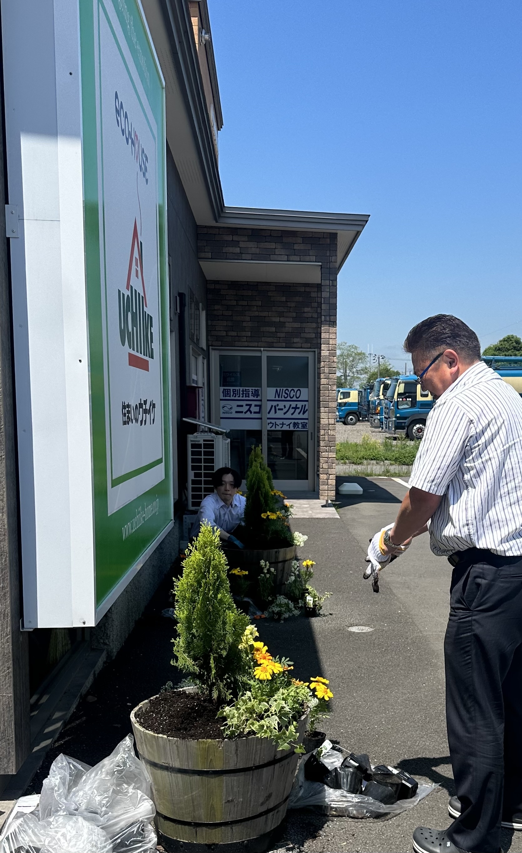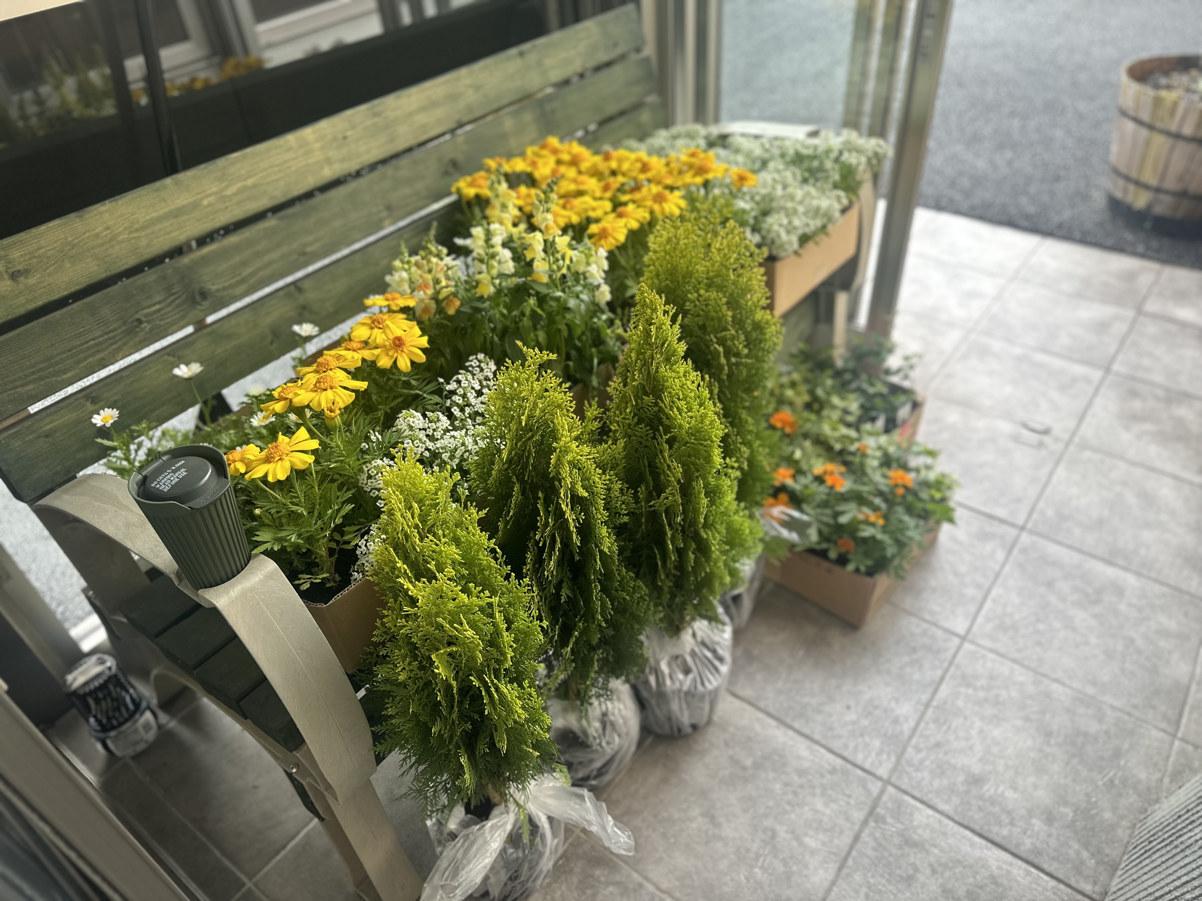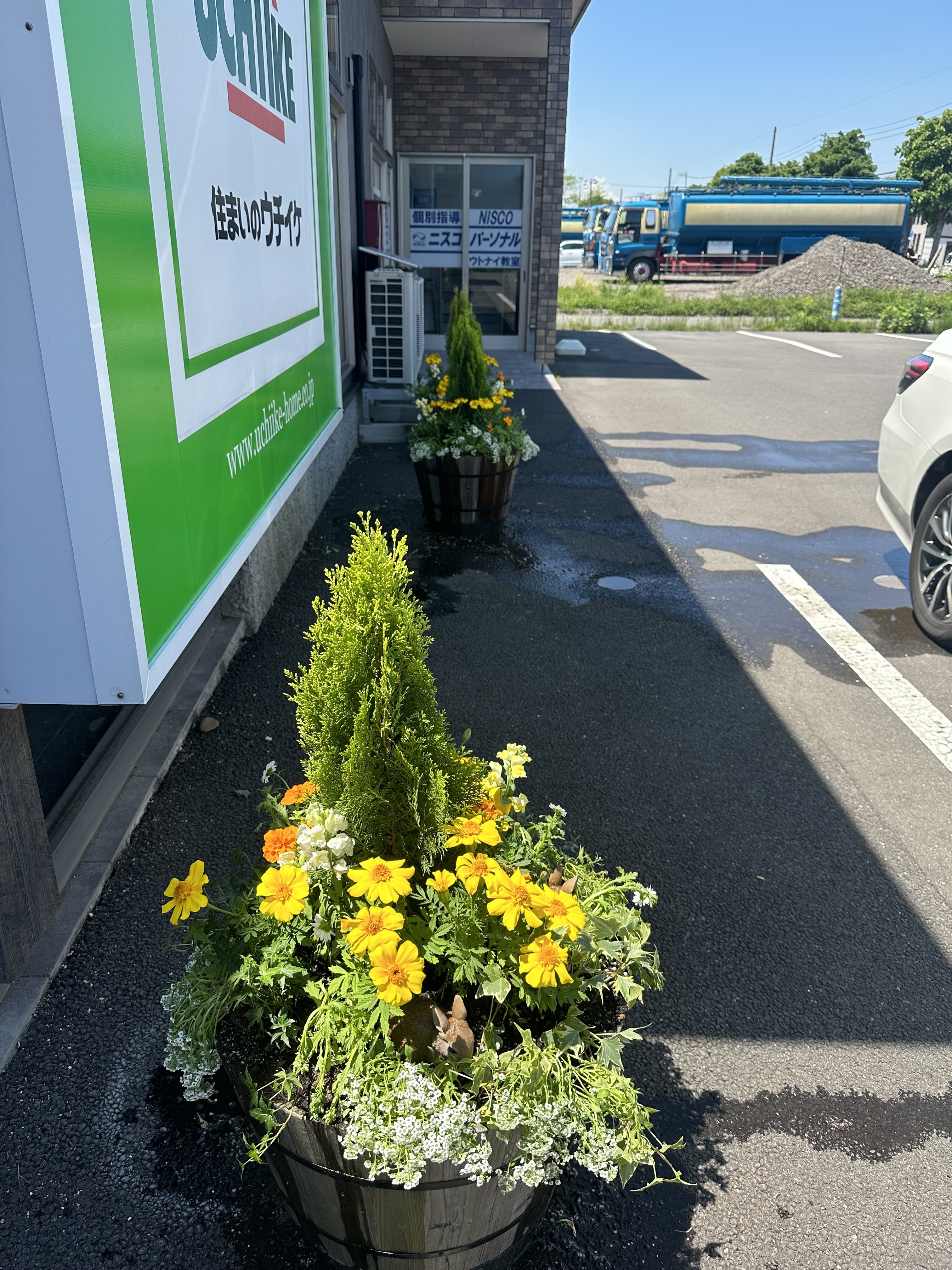 完成。黄色とオレンジのお花たち、沢山お花を付けますように。