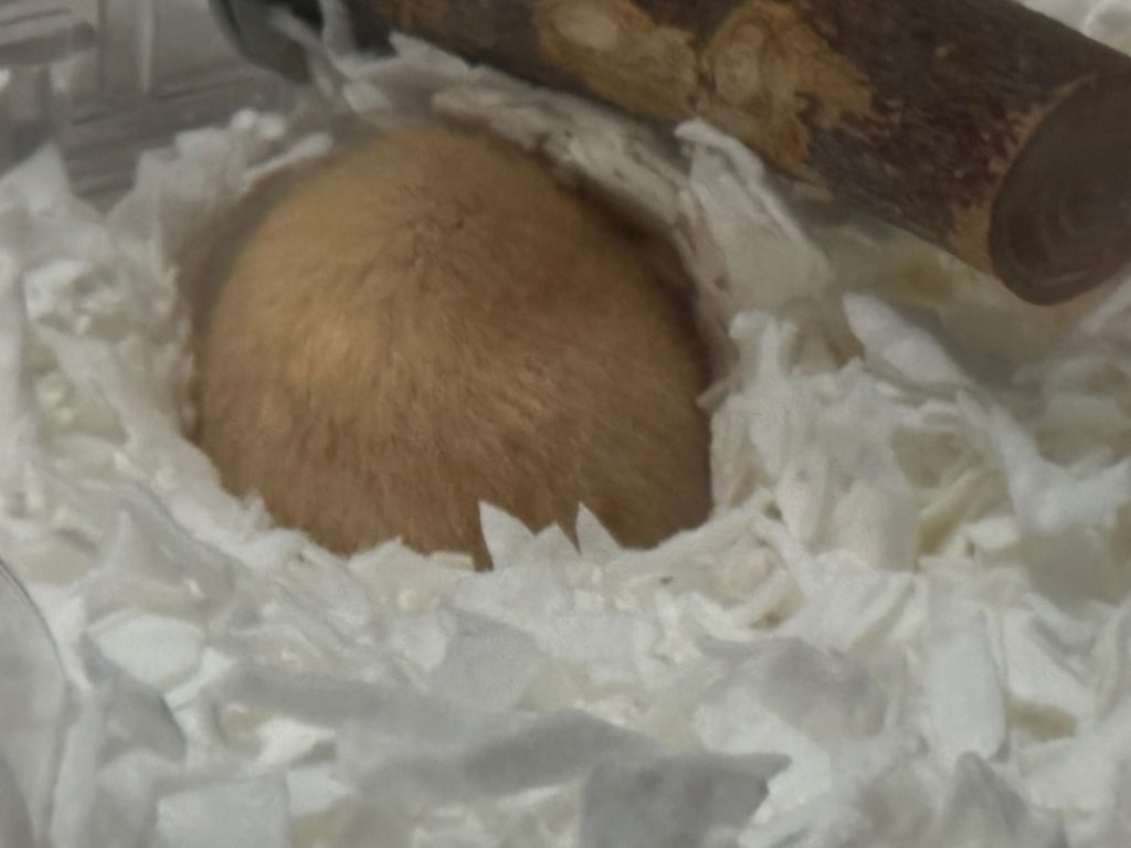 あとは、家族になってから少し経つのですが、キンクマハムスターのうにまるです。女の子です。