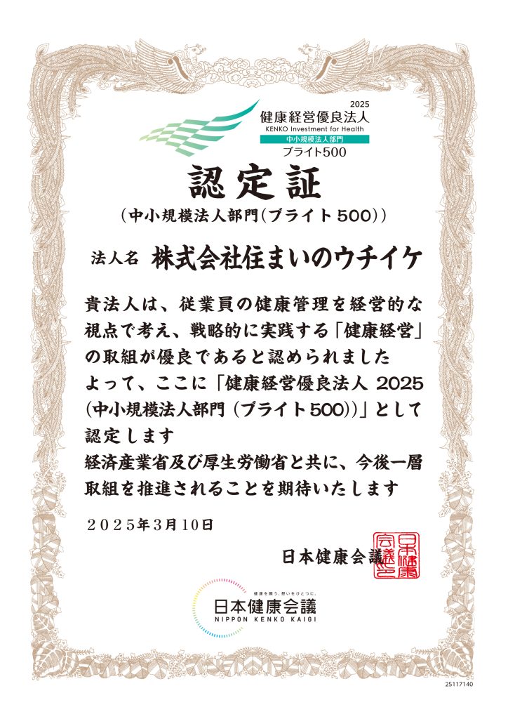 全国中小規模法人部門19,796法人 上位500法人に認定