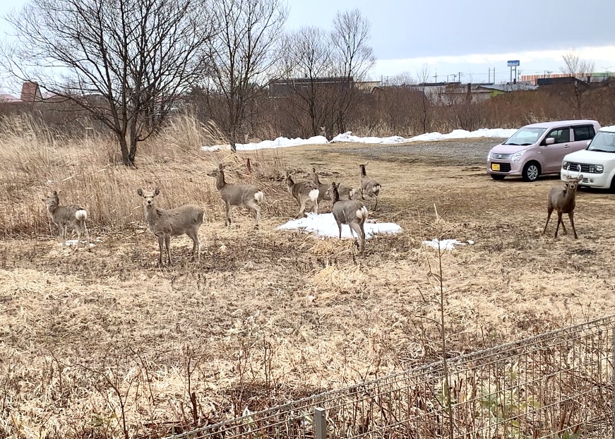 自宅の裏に現れる、鹿さんの大群を追い払います。
