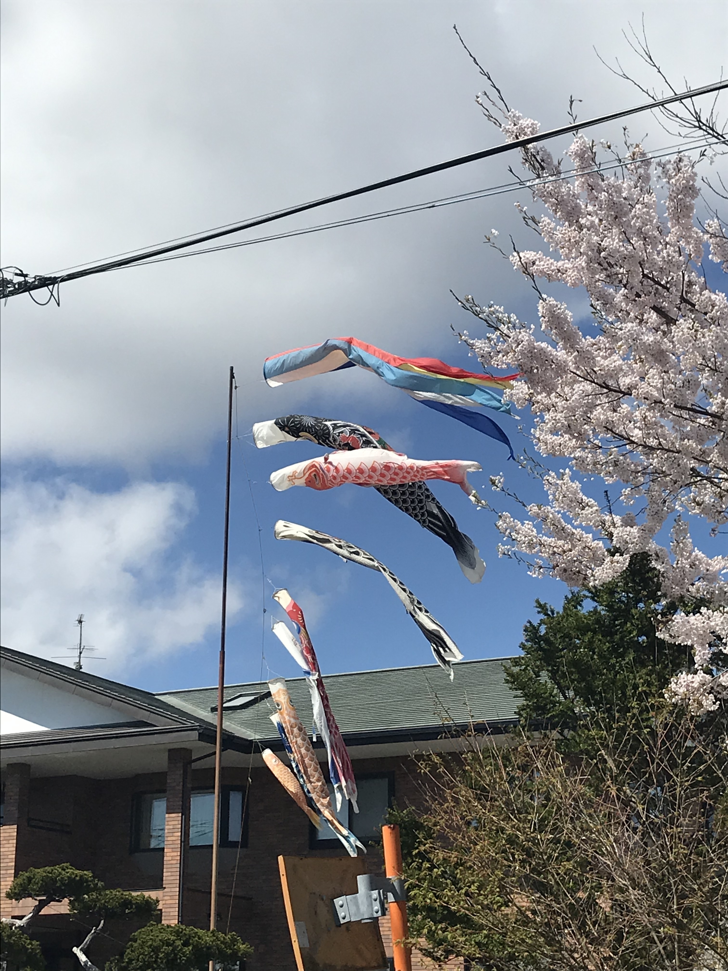 いえ、嘘です。ご近所さんです。庭に大きなこいのぼりと桜です。