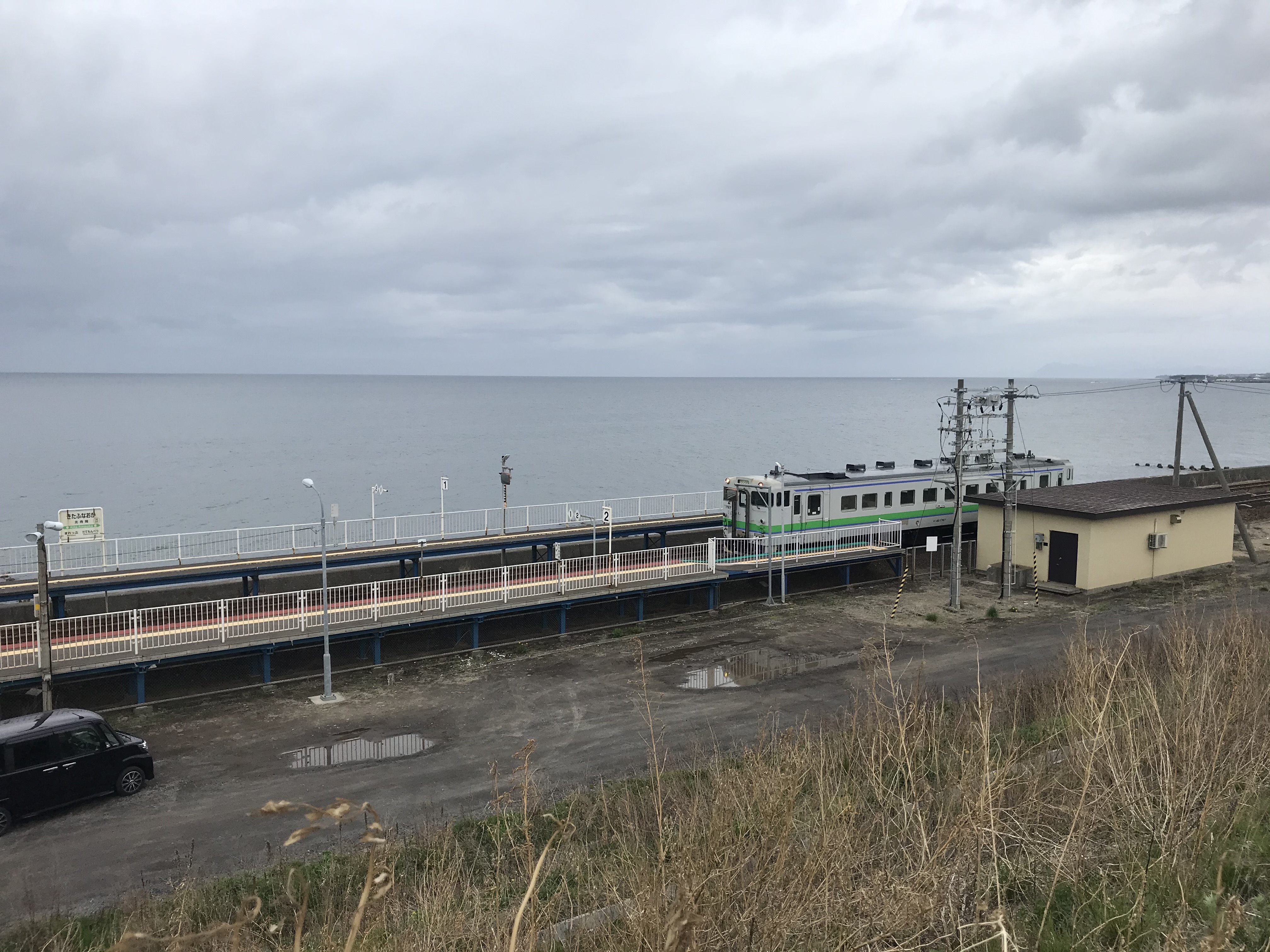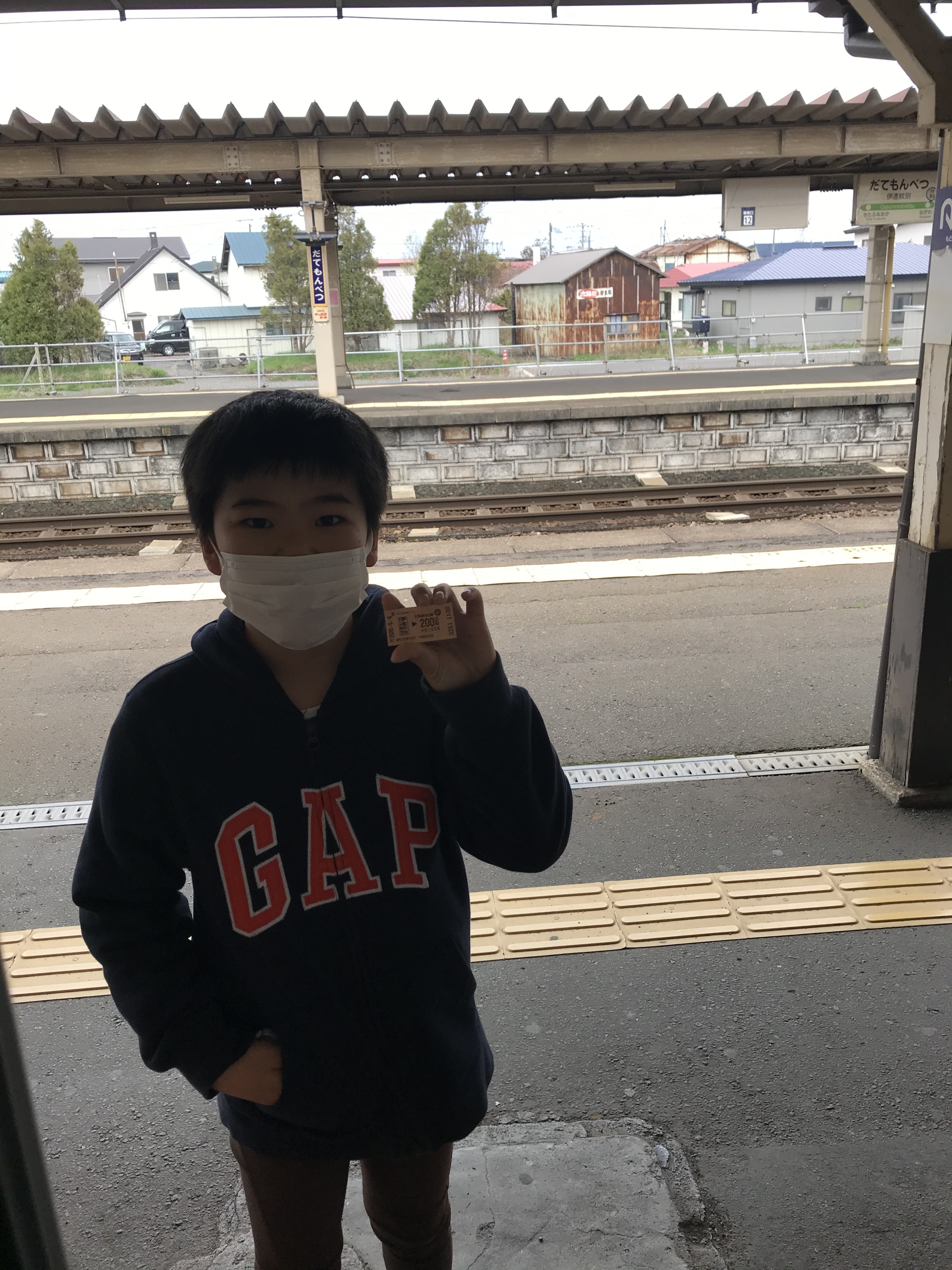 息子電車に乗せて、私は次の駅まで車で走り、お迎えに。