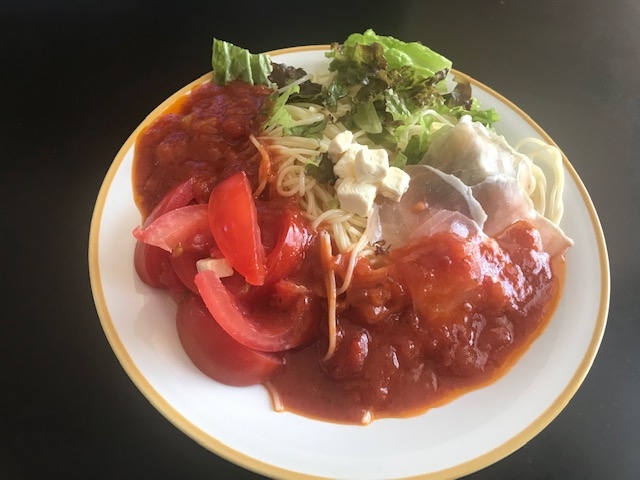 生ハムと高リコピントマトの冷製パスタ