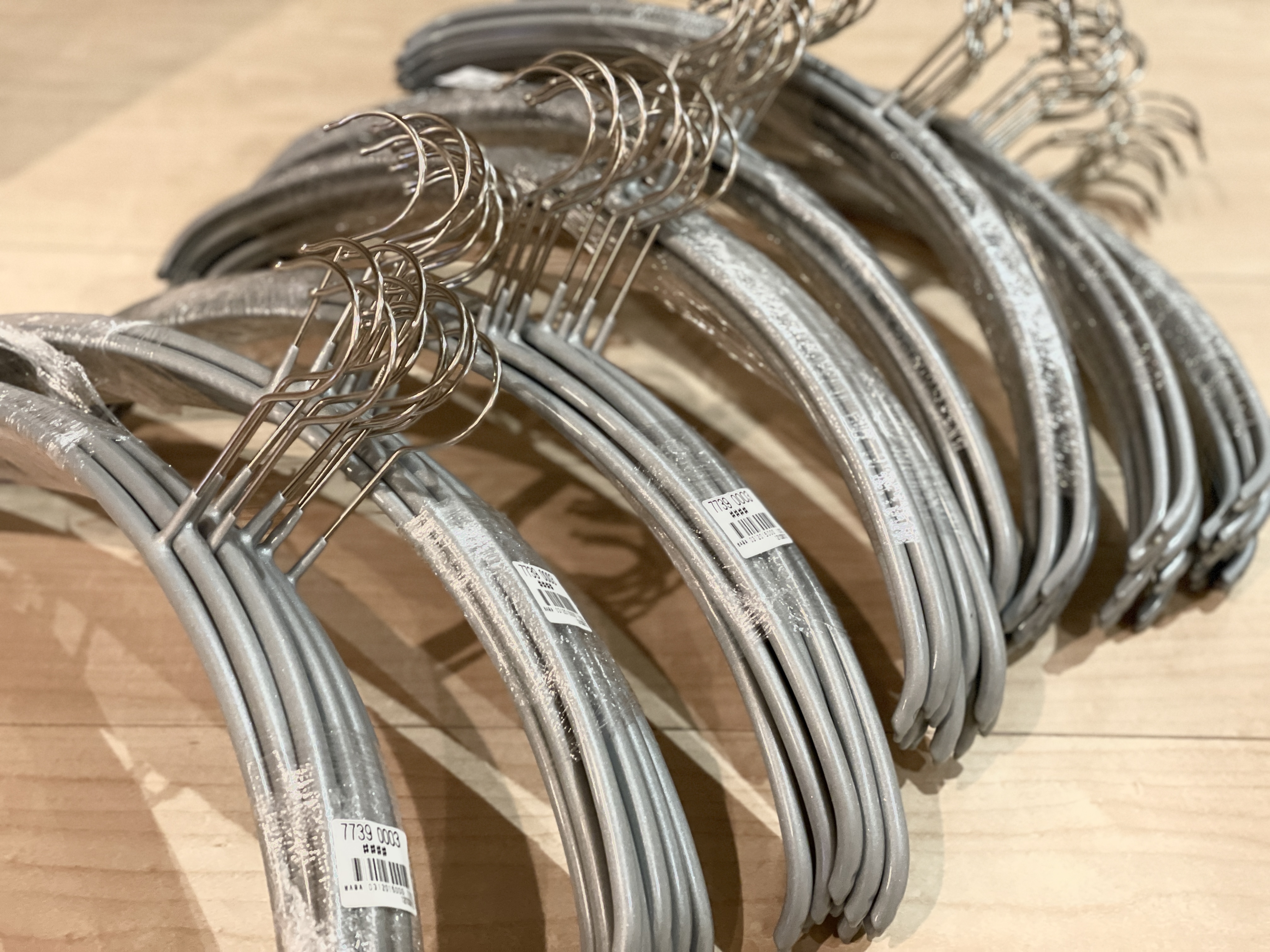 いままで木のハンガーを使っていたんんですが、滑るんですよね。ヤツら
