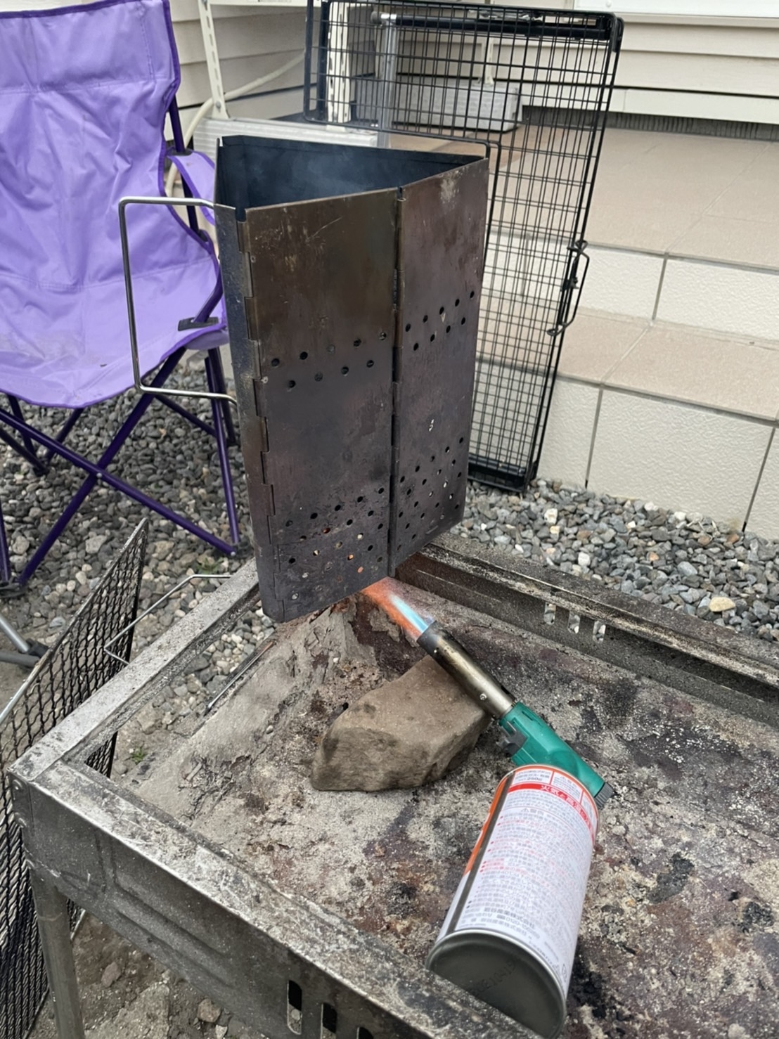 ガスバーナー(もっと本気のやつ)を炭の中にぶっこんで放置。