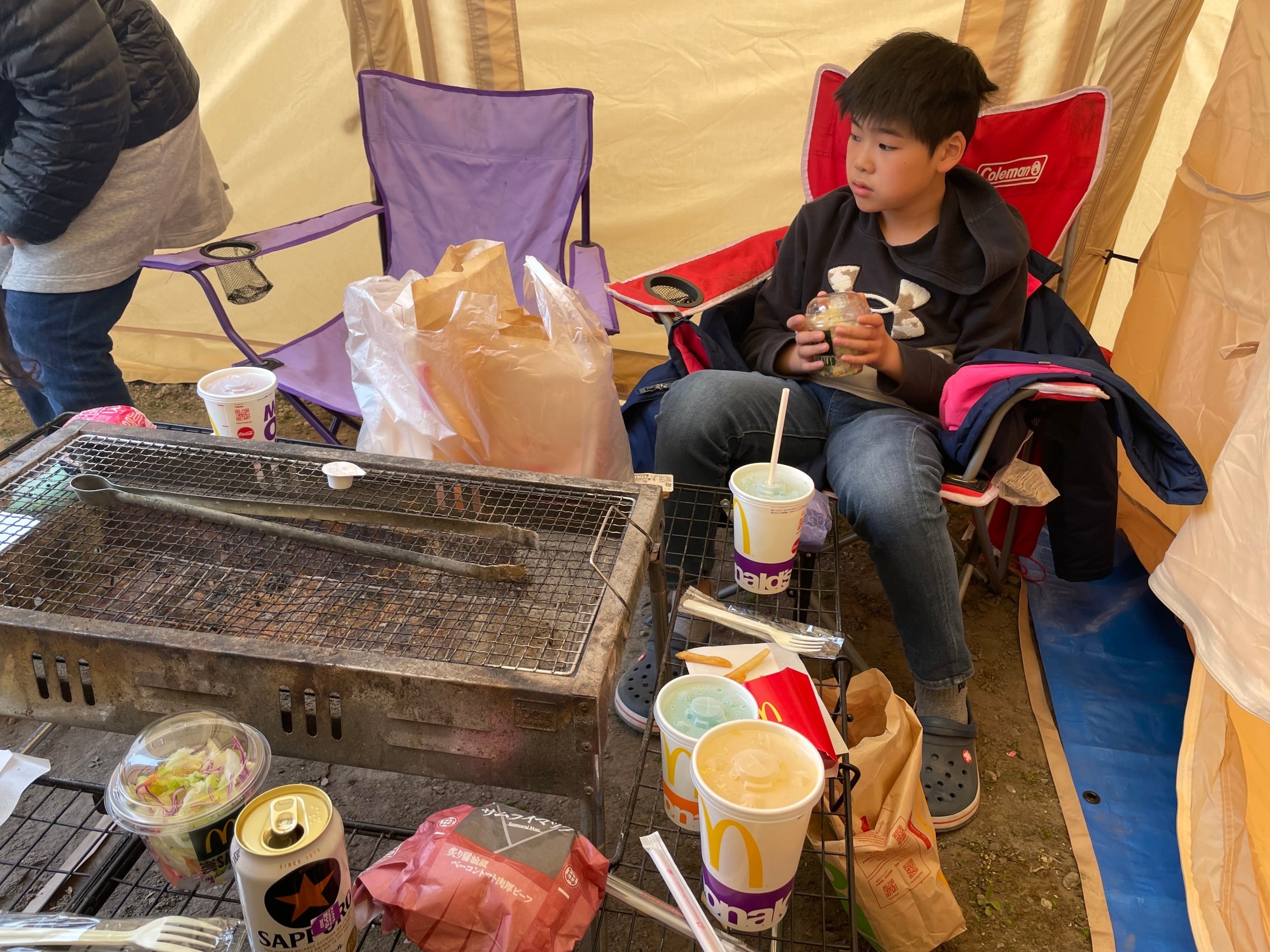 いつもメンバーのテントで団らんして、
