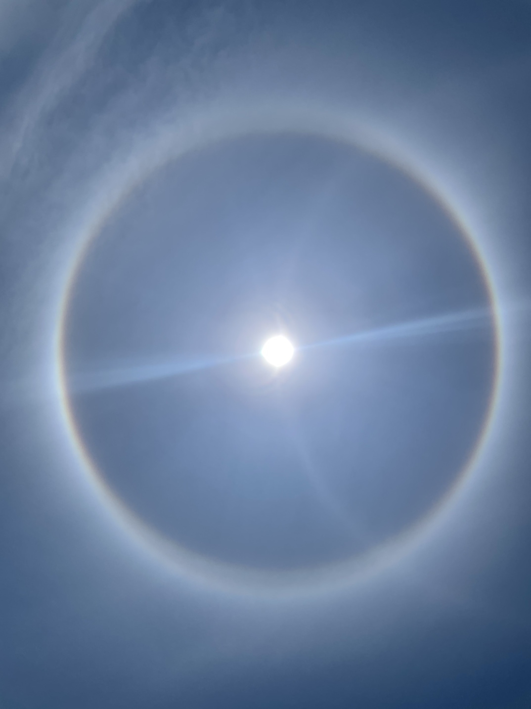 「太陽の周りに虹の輪が出来ている!」と教えてくれました。