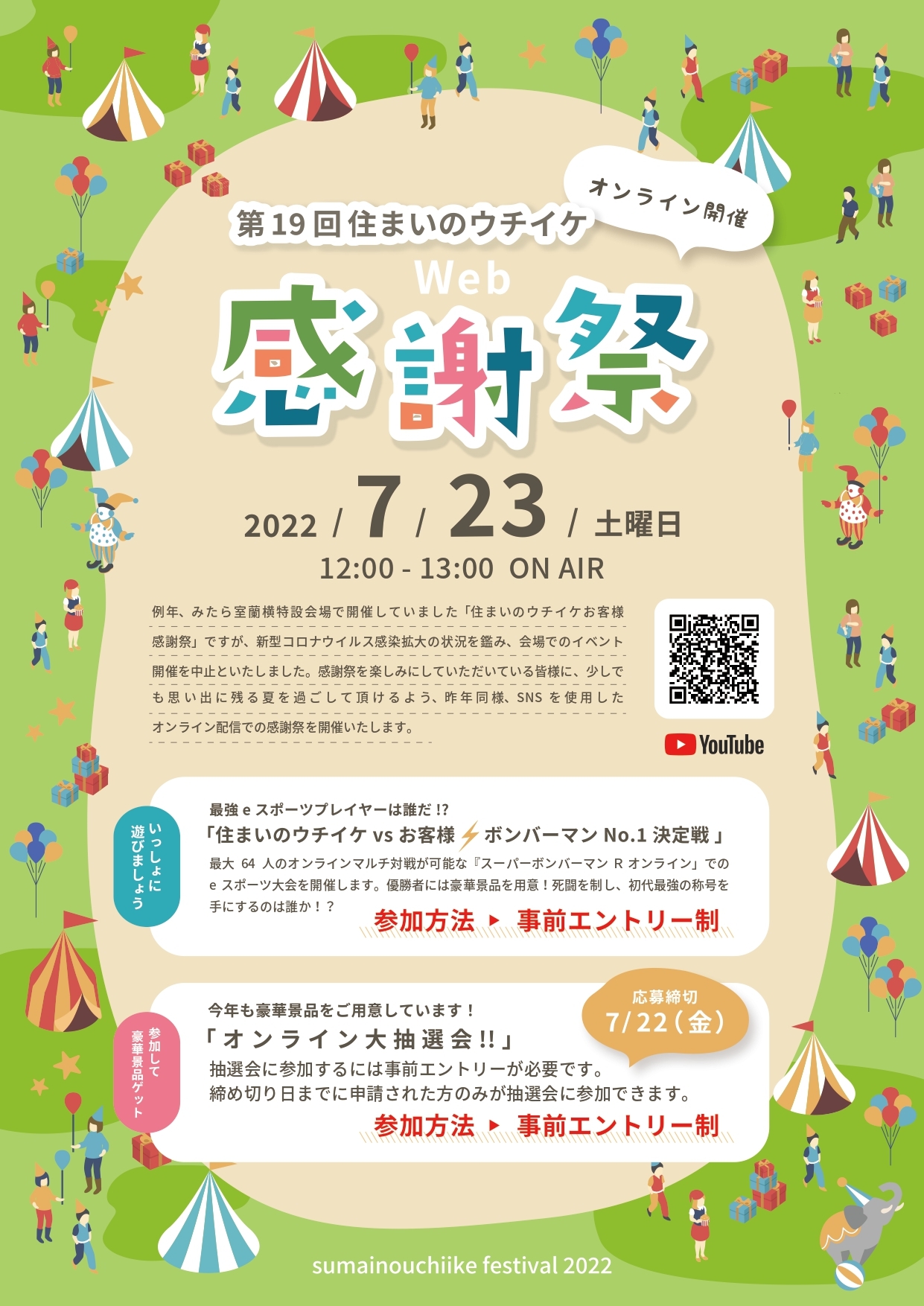 7月23日(土)12:00~ 住まいのウチイケYouTubeチャンネルにて配信いたします!