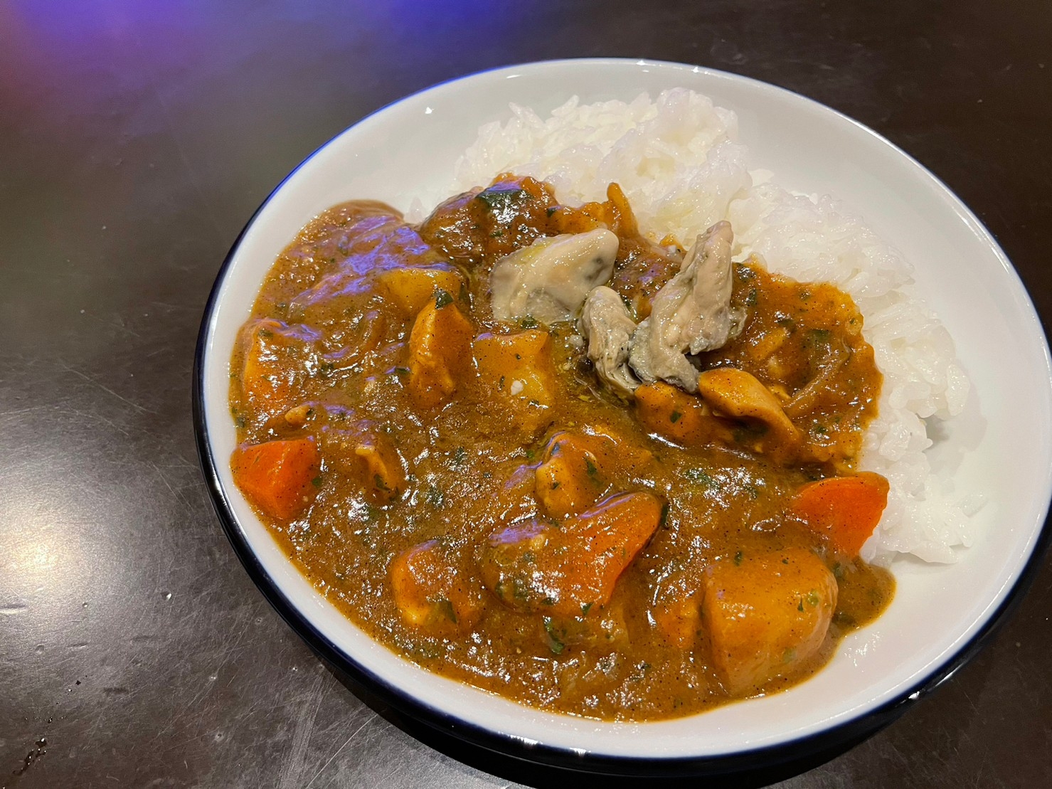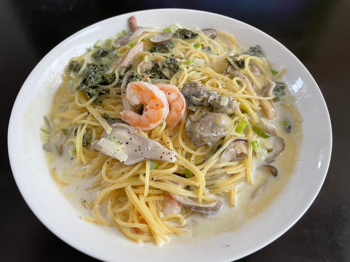 小さめの鍋にオリーブオイルを入れ、ニンニクを入れ、牡蠣をいれる。