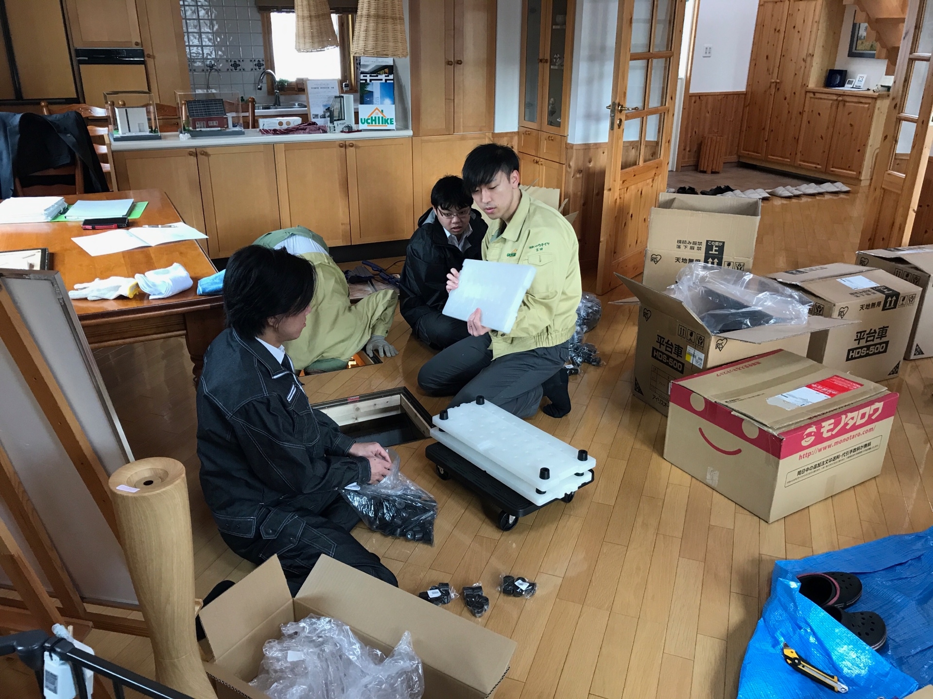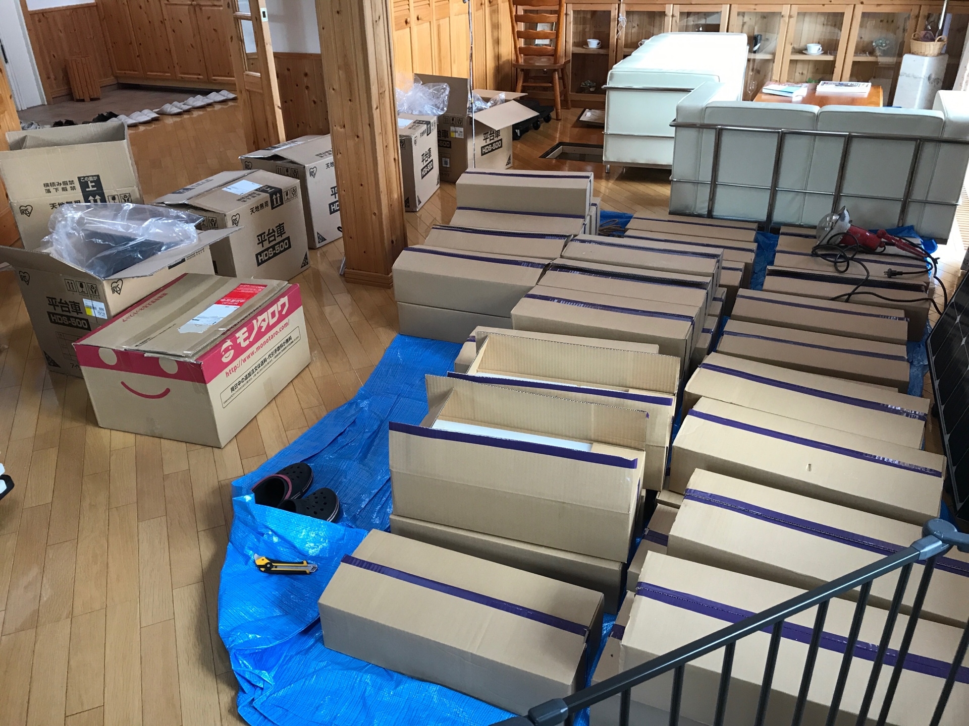 この段ボールにいっぱいの蓄熱材を床下に入れると言う作業を行いました。
