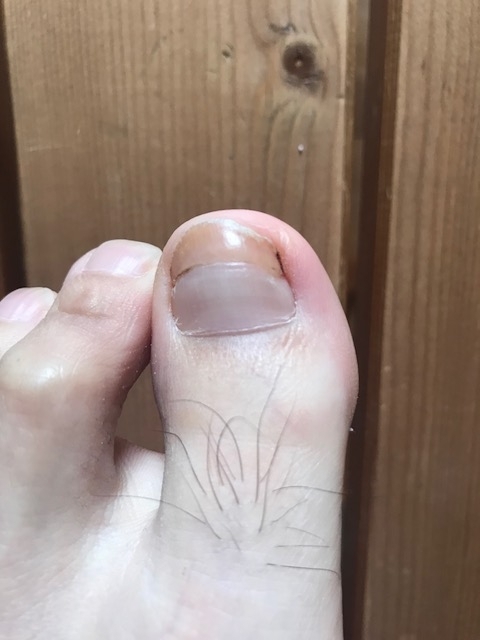 3月にフットサルでちょっとした衝撃から爪が青ざめ、