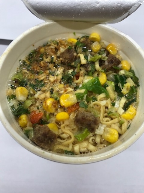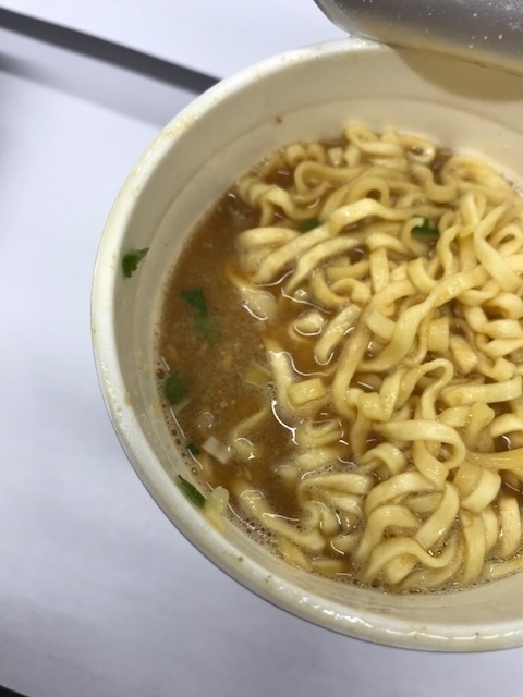 食べようとすると、見た目はカレーヌードルかと見間違えます。