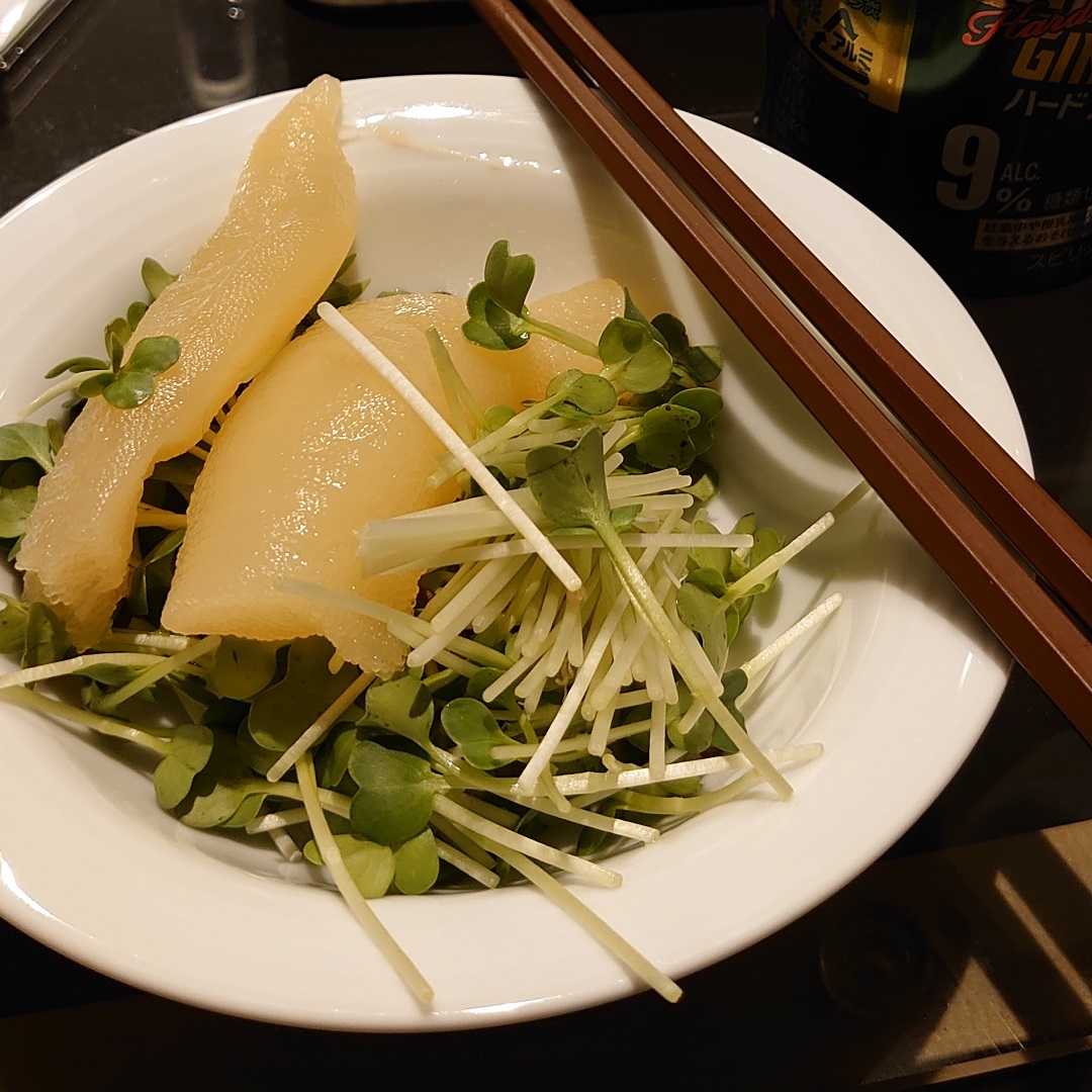 余ったカイワレ大根に数の子乗せてみた(もう酔っ払いの頭脳では覚えてない)