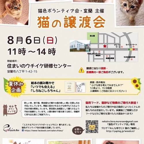 今日は猫ボラです。 2017.08.06 大島 剛 本日住まいのウチイケ研修センターにて 猫の譲渡会があります。 猫が欲しい方是非来てくださいね。 ボランティアの皆さん頑張ってくださいね。 それではバイなら~ — — — — — — — — — — — — — — — — — — — — — — 室蘭、登別、伊達、苫小牧の新築・注文住宅は住まいのウチイケ。省エネルギー性能の優れた住宅を提供、リフォームも対応しています。モデルハウスも常時見学可能ですのでお気軽にどうぞ。 住まいのウチイケ https://uchiike.replantest.com 大島 剛 左 室蘭ブログ ブログ 右