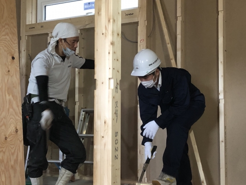 残暑見舞い申し上げます。 2020.09.09 加瀬 澄美 最近よくバッタに遭遇します。 総務の加瀬です。 昨日、久しぶりにお日様☀見たな~なんて言っていたら めちゃめちゃ暑い!室蘭でもグッタリする暑さ! そんな中、昨日は札幌にて地鎮祭でした。 地鎮祭を終えて、室蘭に帰ってきた辻さんによると 札幌は地獄のような暑さだったらしい…ホントお疲れ様でした… マスクをしていると身体の水分不足に気が付きにくいですから みなさんも熱中症に気を付けましょう! さてさて、先週のお話ですが 室蘭工業高校の生徒さん1名の会社見学を受け入れました。 聞くと、モノづくりが好きで大工になりたい!とのこと。 室蘭本社で少し話をして、社内の雰囲気を感じてもらって 早速現在進行中の現場へGO! 佐藤棟梁の指導のもと大工体験中の様子。 同じくインターンシップで大工仕事を体験して 3年前に入社した斉藤大工(隠し撮り) とっても頼もしくなりました! あ~、私も歳を取るはずだわ。 今日もこれから暑くなるので 大工さん、水分塩分取って身体気を付けて下さーい! ではでは。 — — — — — — — — — — — — — — — — — — — — — — 室蘭、登別、伊達、苫小牧の新築・注文住宅は住まいのウチイケ。省エネルギー性能の優れた住宅を提供、リフォームも対応しています。モデルハウスも常時見学可能ですのでお気軽にどうぞ。 住まいのウチイケ https://uchiike.replantest.com 加瀬 澄美 左 室蘭ブログ ブログ 右