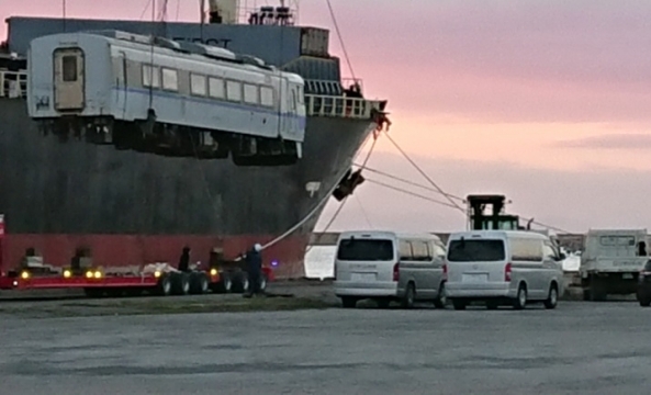 タイに行くそうです。 2021.11.18 大島 剛 大島です。 昨日の朝刊に室蘭の崎守埠頭からタイ行きの船に汽車を乗せる 作業をやってるとの記事があり早速見てきました。 ちょうど休みだったのでどんなものかと こんな感じです ↓ ↓ 誰もが一度は乗ったことのある汽車ですね!! JRで払下げしたものらしいのですがこれを タイに持って行き再度走らせる様です。 ある意味3Rですね。 私の他にもカメラを持った若い方が沢山いて 東京からわざわざ写真を撮りに来ていた方もいました。 それぞれの思い出なのかな~ この汽車の名前は パクチー1号 パタヤ2号 なんちゃって。。 それでは。。 — — — — — — — — — — — — — — — — — — — — — — 室蘭、登別、伊達、苫小牧の新築・注文住宅は住まいのウチイケ。省エネルギー性能の優れた住宅を提供、リフォームも対応しています。モデルハウスも常時見学可能ですのでお気軽にどうぞ。 住まいのウチイケ https://uchiike.replantest.com 大島 剛 左 室蘭ブログ ブログ 右
