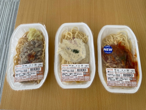 食い物ネタ 2022.06.13 鈴木 健一郎 どーも、さわりだけしか思い出せず、なんて曲だっけ~? ってありますよね。 工藤静香の『千流の雫』ってタイトルでした。 スズキです。 とある、私の昼休みランチについてです。 私の会社は八丁平にありまして、昼はよく セーコーマートで買います。 ちょっと前に有吉とタカトシがセコマの 小さめのパスタ食べてました。 このお値段で~!!!ってなことを言ってました。 これです。 はい、ふつうにどれも美味しかったです。 先入観からハードルが下がっていたのかも知れませんが、 本音でひとつ100円ちょっとなら、飽きないし良いと思いました。 ん?フォークが3本? 店員さんも一人で食べるとは思わなかったのですね。 で、真ん中のフォークはひとつだけ丸みがあるけど、 これでどのパスタを食べればよかったのだろう・・・ ~~~~~~~~~~~~~~~~~~~~ アイリがうなぎ食べたいって言ってたので、 画像を送ってあげました。 気を悪くされたようです。 — — — — — — — — — — — — — — — — — — — — — — 室蘭、登別、伊達、苫小牧の新築・注文住宅は住まいのウチイケ。省エネルギー性能の優れた住宅を提供、リフォームも対応しています。モデルハウスも常時見学可能ですのでお気軽にどうぞ。 住まいのウチイケ https://uchiike.replantest.com 鈴木 健一郎 左 室蘭ブログ ブログ 右