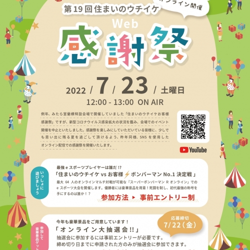 あと2日!エントリー忘れていませんか? 2022.07.20 加瀬 澄美 ジメジメしてますね。 私も年季の入ったくせ毛です。総務の加瀬です。 今年もとうとうやってきました!住まいのウチイケ感謝祭! 7月23日(土)12:00~ 住まいのウチイケYouTubeチャンネルにて配信いたします! 皆様、抽選会エントリーはお済みしょうか? 今年の感謝祭の抽選会は、事前エントリーが必要になっております。 お電話(0143-42-4118)または HP問い合わせ よりご連絡ください。 詳しくは、住まいのウチイケHPにて! 事前エントリー制のため、今年は当選確率が高めとなっております! エントリー応募期限は 7月22日(金)まで となっております。 ご案内DMが届いたお客様、忘れずエントリーお願いします。 また、エントリーしていただいても 感謝祭当日、抽選時に当選の電話に5コール以内に電話に出ないと 当選が無効になり、再抽選となります。 23日(土)12:00~13:00間は、電話のそばから離れずに 0143-42-4118の番号から着信がきたら、スグ電話に出てくださいね。 本日は感謝祭ご案内でした! ではでは。 — — — — — — — — — — — — — — — — — — — — — — 室蘭、登別、伊達、苫小牧の新築・注文住宅は住まいのウチイケ。省エネルギー性能の優れた住宅を提供、リフォームも対応しています。モデルハウスも常時見学可能ですのでお気軽にどうぞ。 住まいのウチイケ https://uchiike.replantest.com 加瀬 澄美 左 室蘭ブログ ブログ 右