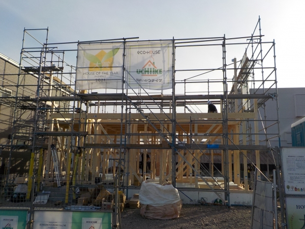 引き続き大工工事中です。家の形になってきました。